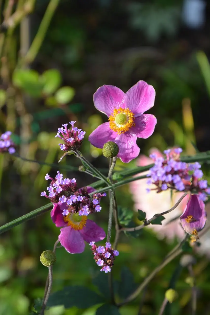 • Heute ist der 15. November und es blühen noch viele Rosen, Ringelblumen, der Schmetterlingsstrauch, der Himbeerstrauch, die Physalis u. a.