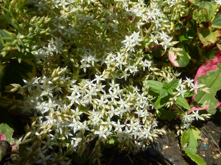 Im Sedum stehen die bunten Eidechsenschwänze und fangen ebenfalls an zu blühen. Ich hatte völlig vergessen, dass die das können. Allerhand!