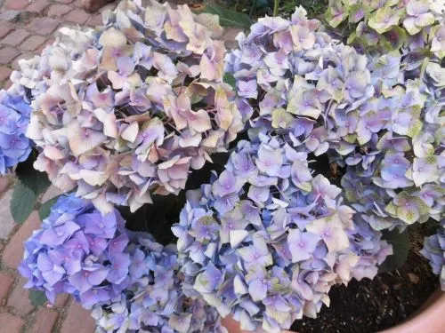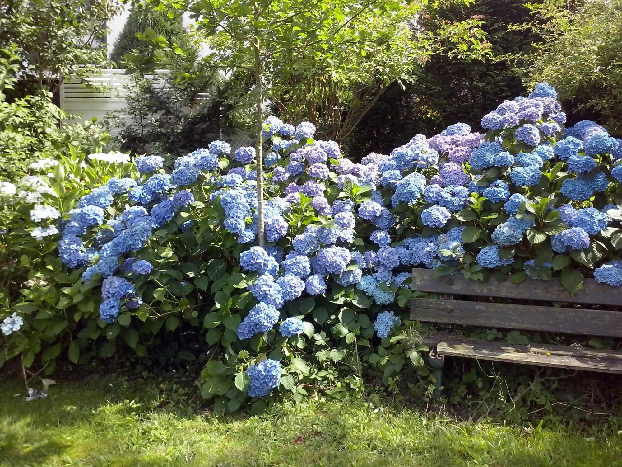 Milchmädchen, ich bin ganz verliebt in deine dicken blauen Hortensien an der Holzbank! Auch die kleine blaue Tellerhortensie (falls es eine ist) find ich sehr schick. Sind die von Natur aus so blau oder fütterst du die mit Spezialdünger?