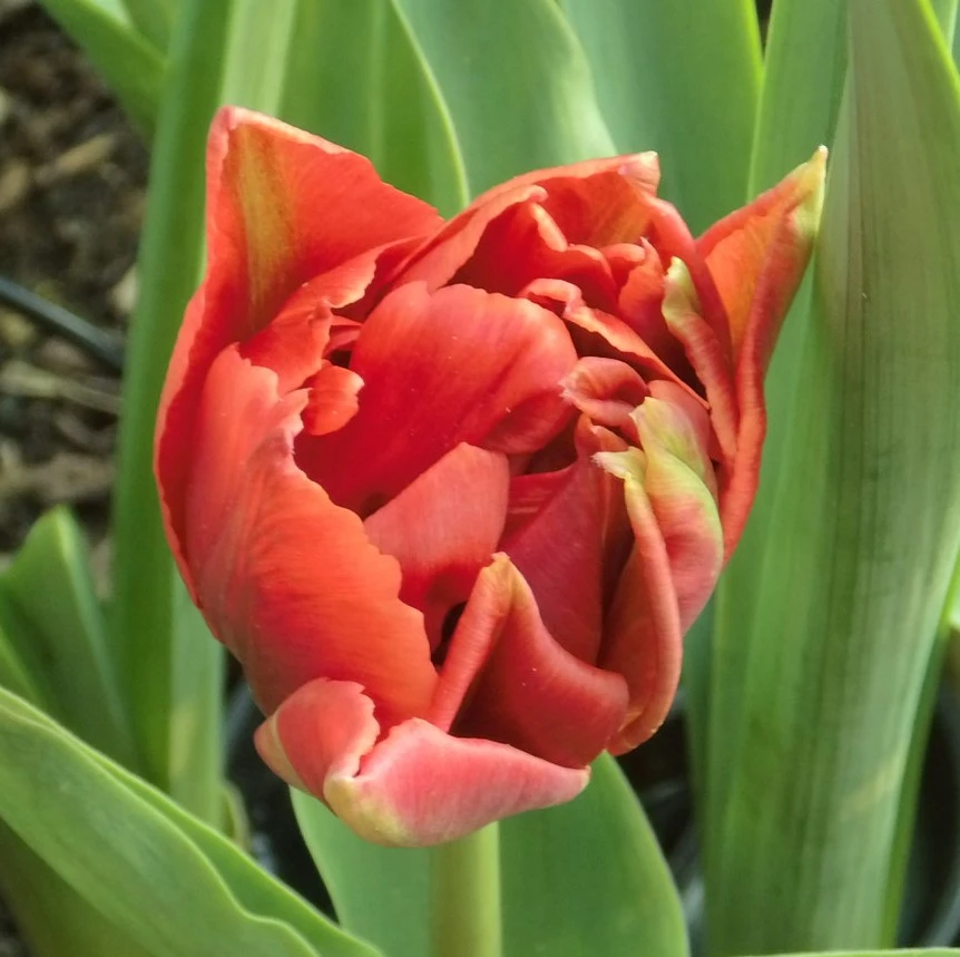 Zu meiner Überraschung besitze ich 3 Stück dieser Tulpen, bei denen es sich mit größter Wahrscheinlichkeit um Melva aus dem Jahr 1931 handelt. Kultiviert wird sie im Hortus Bulborum in Limmen, und da wurde sie offenbar mit derjenigen Sorte vertauscht, die ich bei einem Händler bestellt hatte. Mag sein, dass sie mal in einem Paket drin ist, das man bei Hortus Bulborum kaufen kann, aber sonst ist diese Tulpe nicht käuflich zu erwerben, es gibt auch kaum Informationen darüber. Leider auch kein Bild vom Inneren der Blüte .. .. die Farbe auf dem Foto von außen passt aber recht gut, und auch so ein weißer Streifen mit mehr Rot rundherum ist auf dem Foto zu sehen – offenbar ihre Art auf den Mosaikvirus zu reagieren.