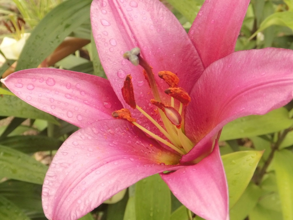 für Rosa und Lavi hab ich die Blüten der Hortensie endless Summer (bild 1u.2)und der Tellerhortensie (bild 3u.4)exta fotografiert dann ist heut die erste Gladiole aufgegangen,der Papagei blüht und noch eine Taglilie.