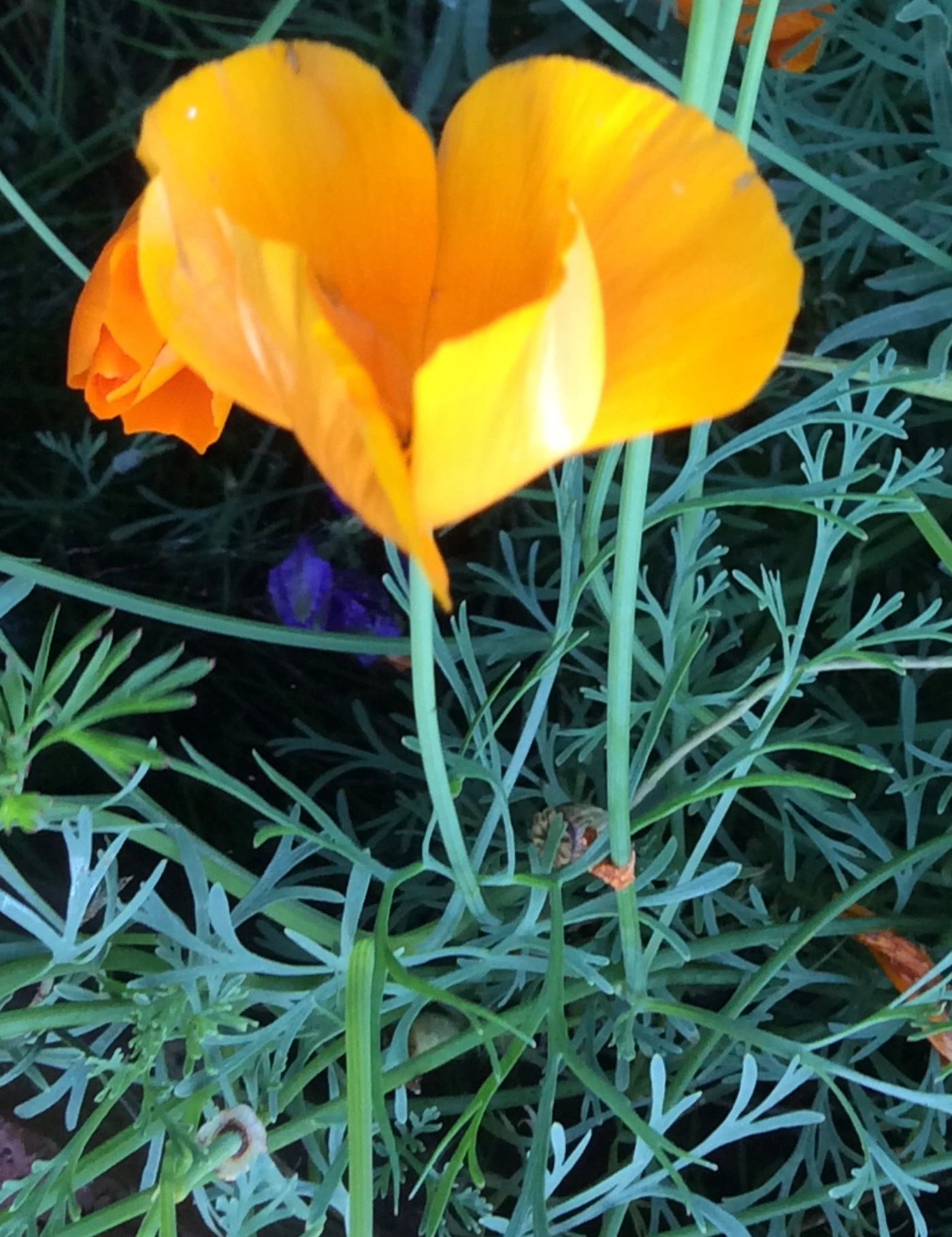 Die gelborange Pflanze auf dem Foto neben der Elfendistel