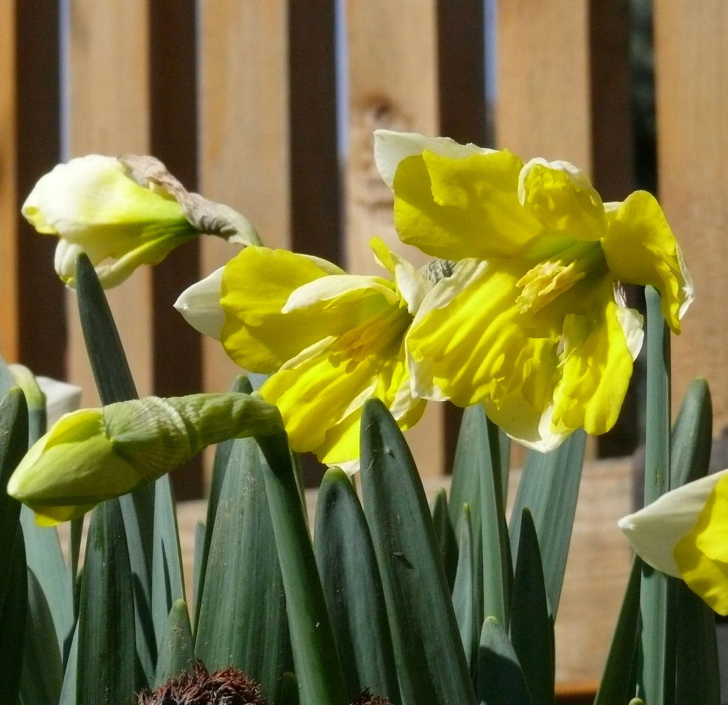 Diese Narzissen heißen Cassata, ich habe sie schon viele Jahre, und so weit mir bekannt ist, bekommt man sie im Handel nicht mehr. Später verblasst das Gelb, aber daran kann es doch nicht liegen – vielleicht eher daran, dass sie sich so gut halten und bei minimaler Pflege immer mehr werden .. ..