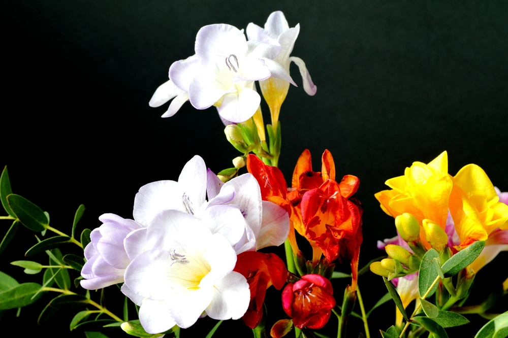 Wenn draußen noch nix blüht, seht man nach bunte Blumen. Fresien sind bei uns im zeitige Frühjahr gern gesehene Schnittblumen.