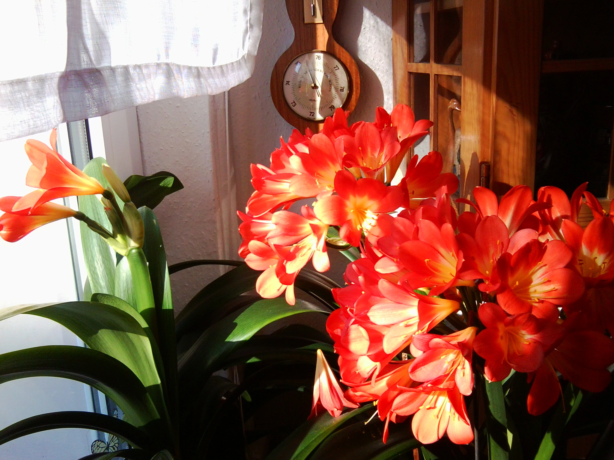 Die Clivien kommen nach den Eisheiligen hinaus in den Garten an einen schattigen Platz, dort stehen die bis zum Herbst, ab und zu wird gegossen wenn es nicht regnet.