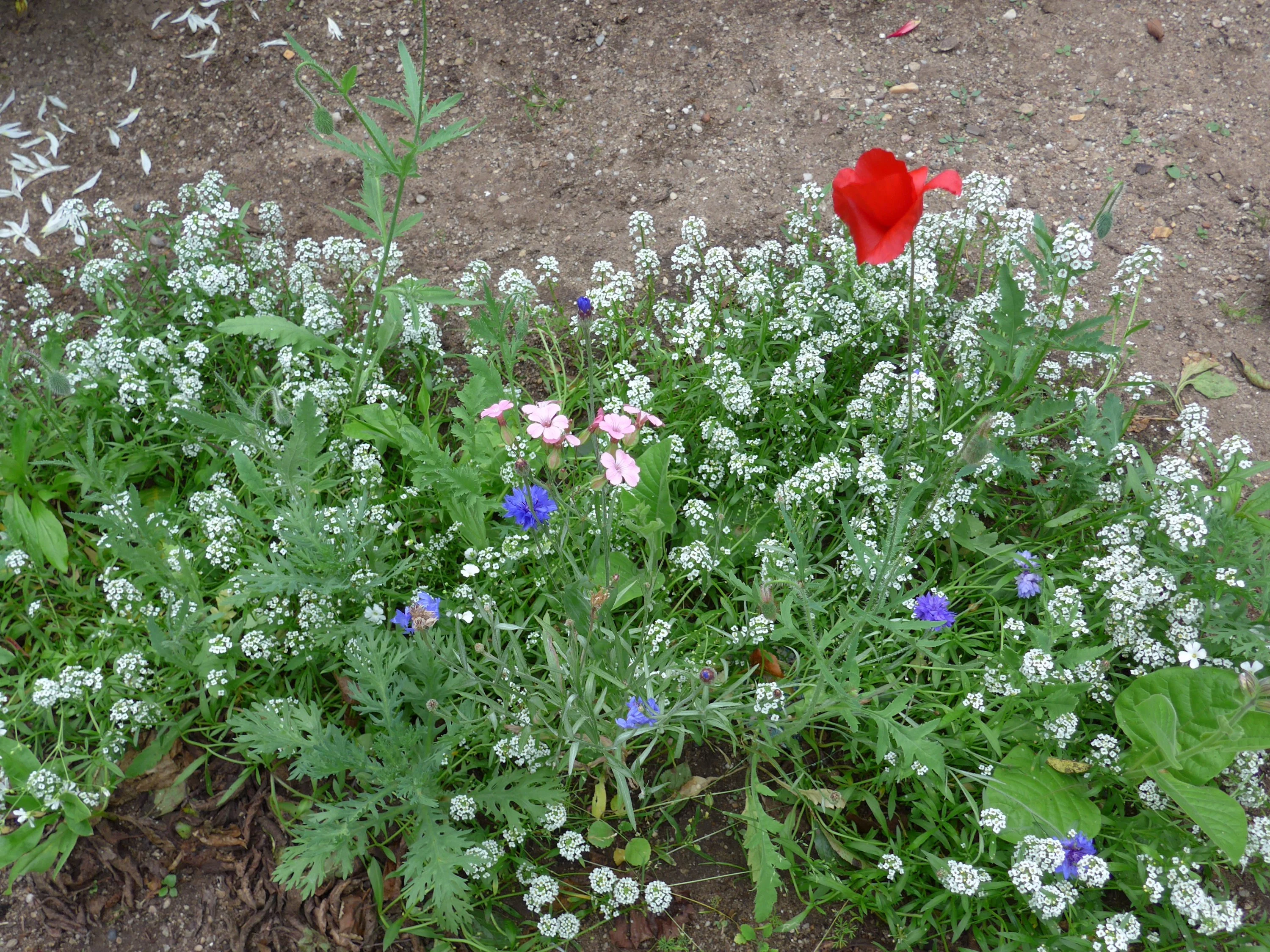 • Eisbegonie und Husarenköpfchen geben sich die Hand.8)8)