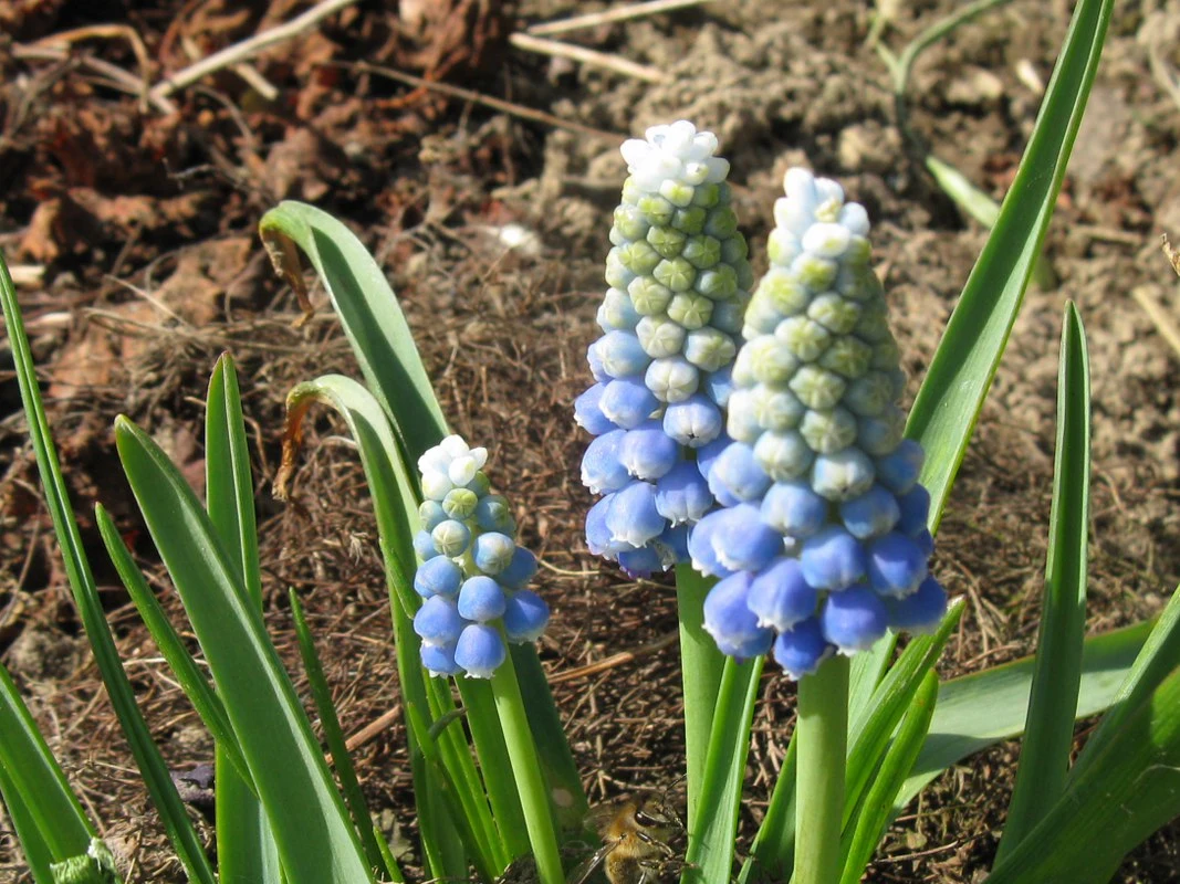 weiße Traubenhyazinthen, Lungenkraut und Kuhschelle