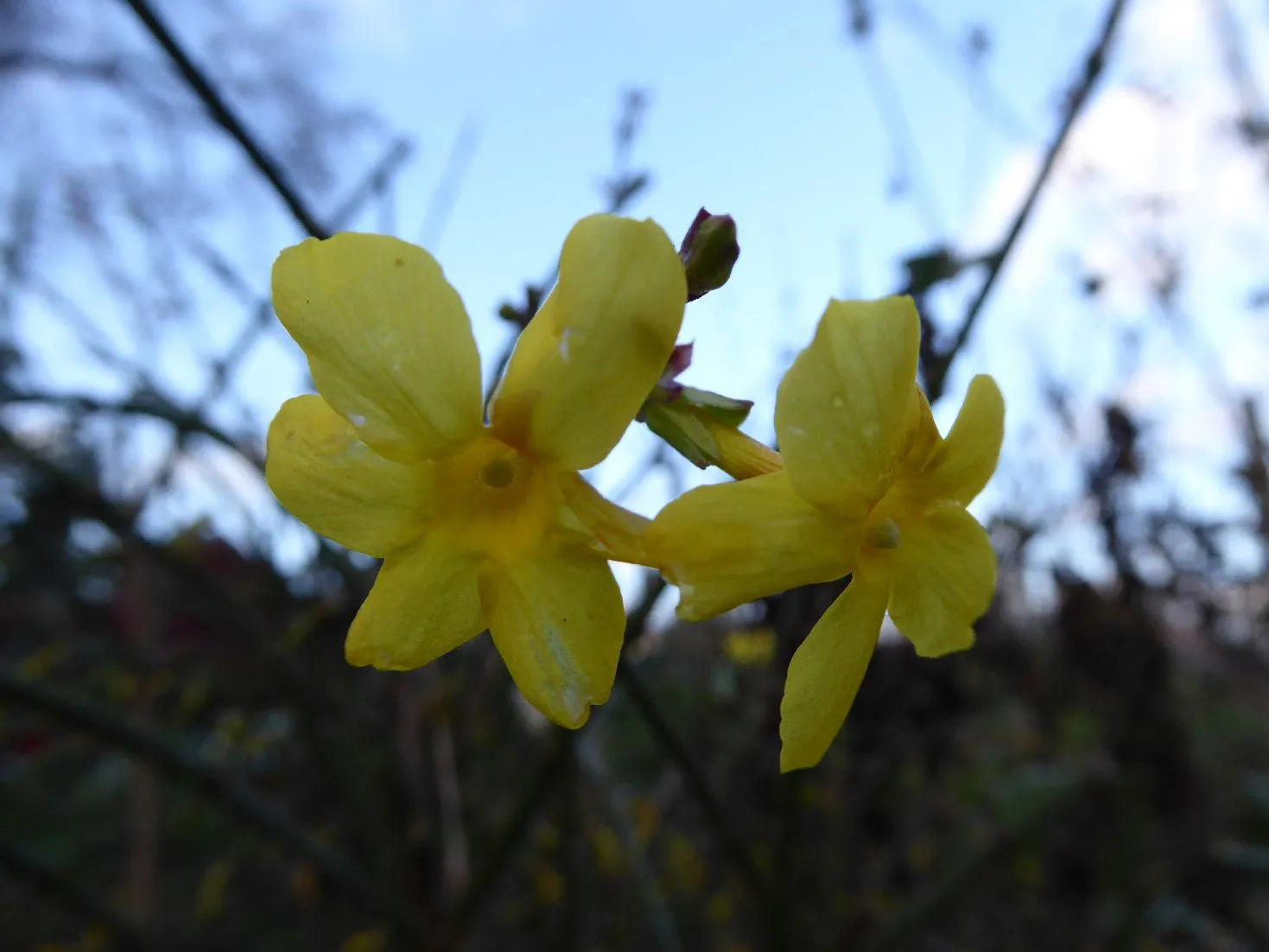 Neue Rosenknospe 'Art Nouveau' und Winterjasmin