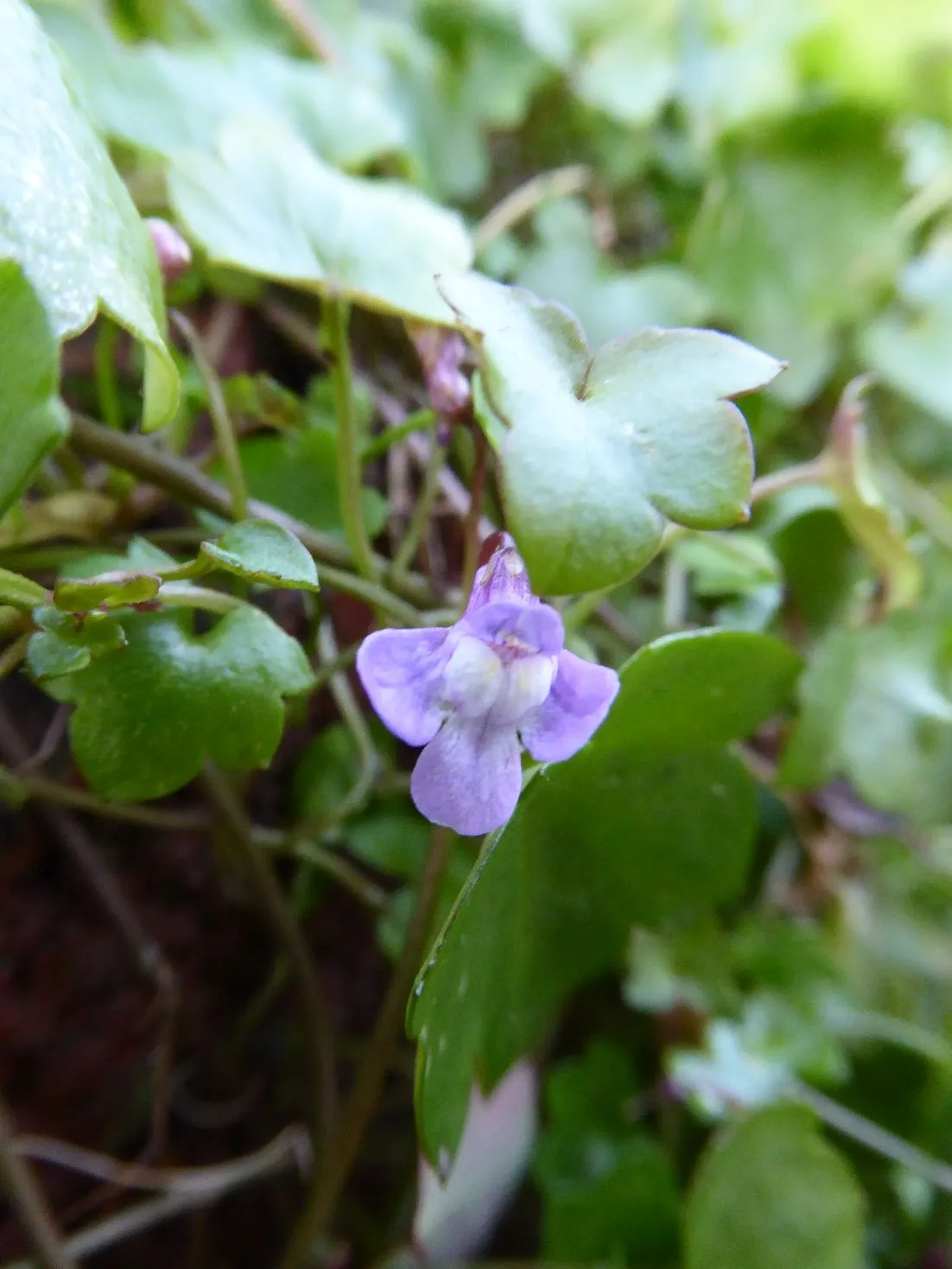 Mauer-Zymbelkraut und winterhartes Alpenveilchen mit Silberblättern
