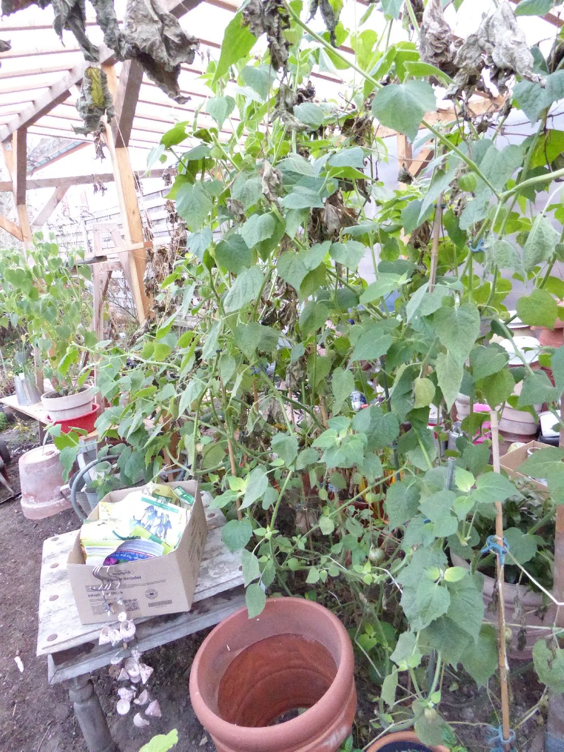 Seltsamerweise doch...es war schon mehrere Male gefroren, Schnee hatte es auch, aber so einiges hat sich noch durchgewurschtelt. Im GWH sind Luffapflanzen und Tomatillos hinüber, aber die Physalis leben und tragen noch. Die reifen sogar noch sporadisch aus, wenn die Beeren weit genug waren.