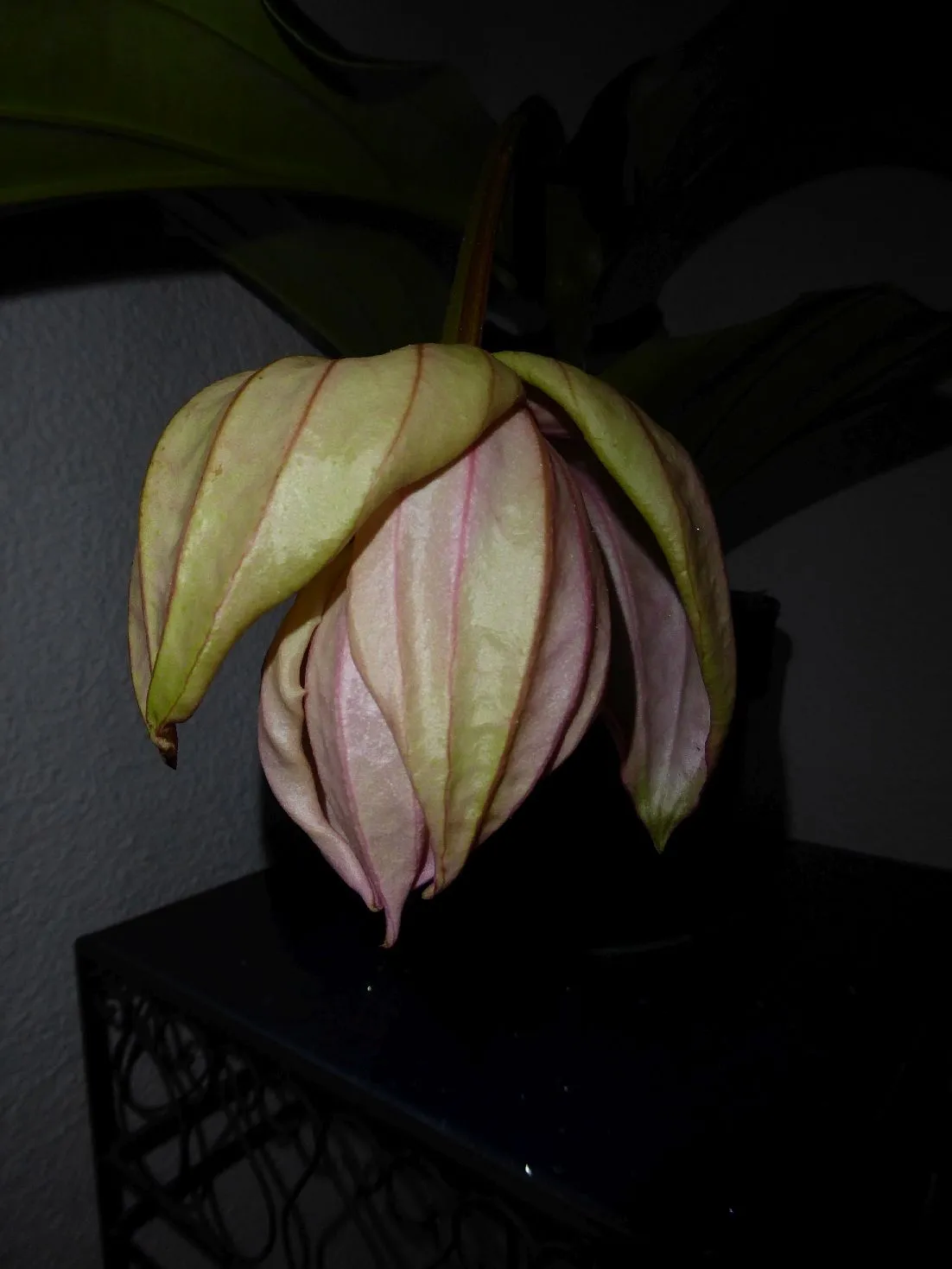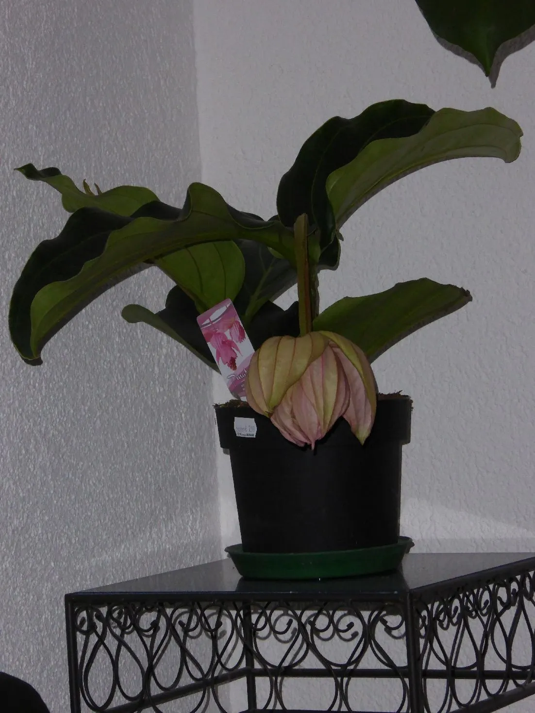 Im Gartencenter hab ich mir neulich eine neue Wohnzimmerpflanze gekauft, eine sogenannte Medinilla magnifica. Sehr beeindruckend, wie sie ihre Blüten aufschiebt: