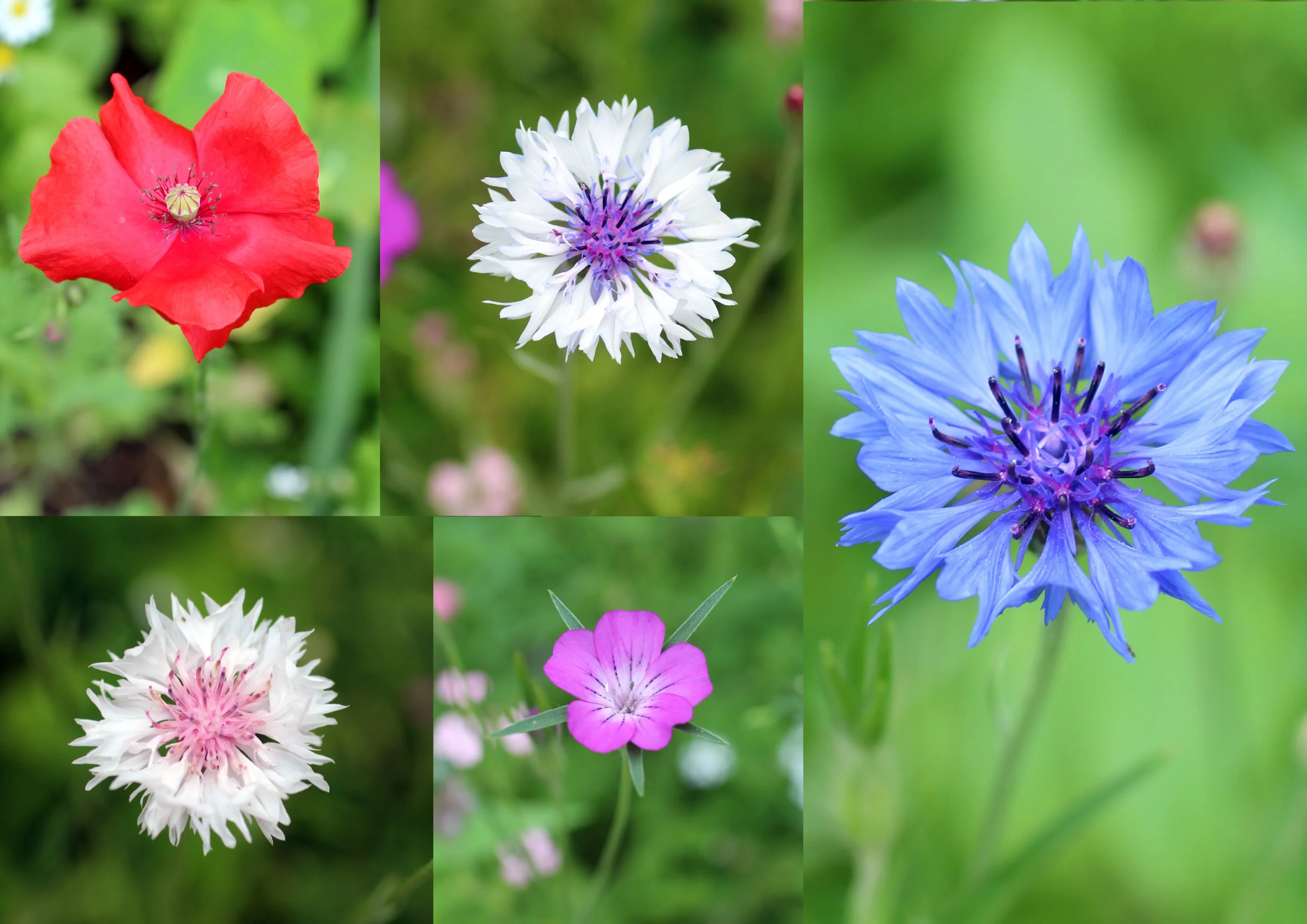 • Ich liebe die wilde Bienenweide, jeden Tag gibt es Neues zu entdecken. Jetzt blühen Kornblumen in verschiedenen Farben, und auch ein Mohn-Nachzügler: