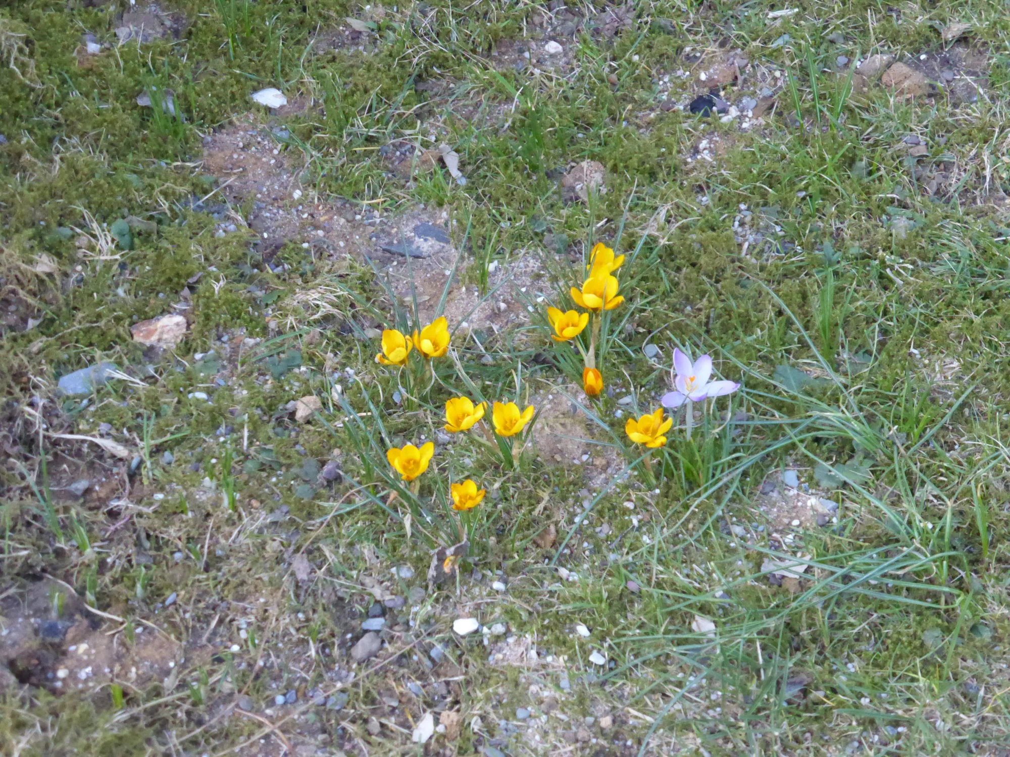 Es blühte heute im Botanischen Garten: zwei Sorten Zaubernuss Scheinquitte Schneeglöckchen Winterlinge Vorfrühlings-Alpenveilchen Vorfrühlingskrokus und eine Rose Coral Dawn.