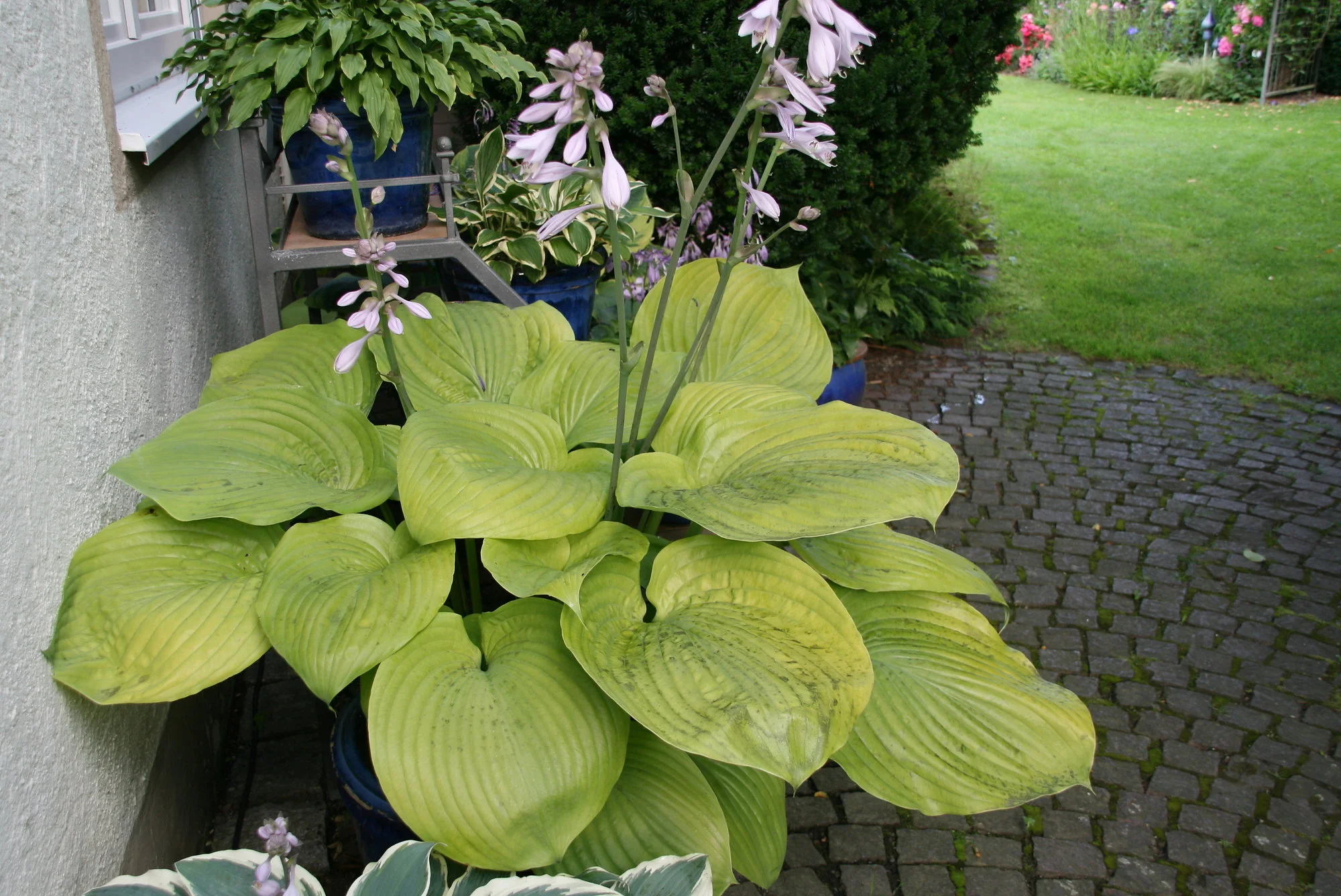 Die Hostas in den Kübeln sehen unglaublich dekorativ aus.