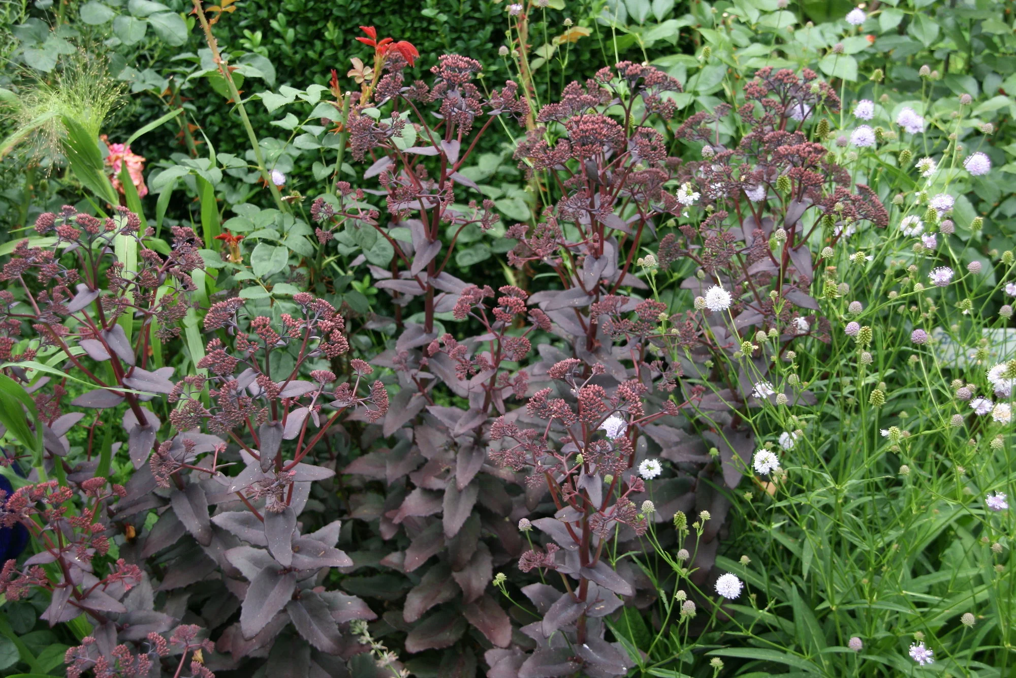 Ich habe mehrere davon, die sind so schön und machen richtig was her im Staudenbeet. Das sieht so gut aus, wenn da was dunkles zwischen all dem Grün ist. Ich rate Dir aber, mache von Anfang an gleich so ein Drahtgitter drum rum, dann wachsen sie da schön rein und können später nicht umfallen. Die sieht man dann später gar nicht mehr, weil sie so eingewachsen sind. Das nachträglich zu machen ist schwierig.