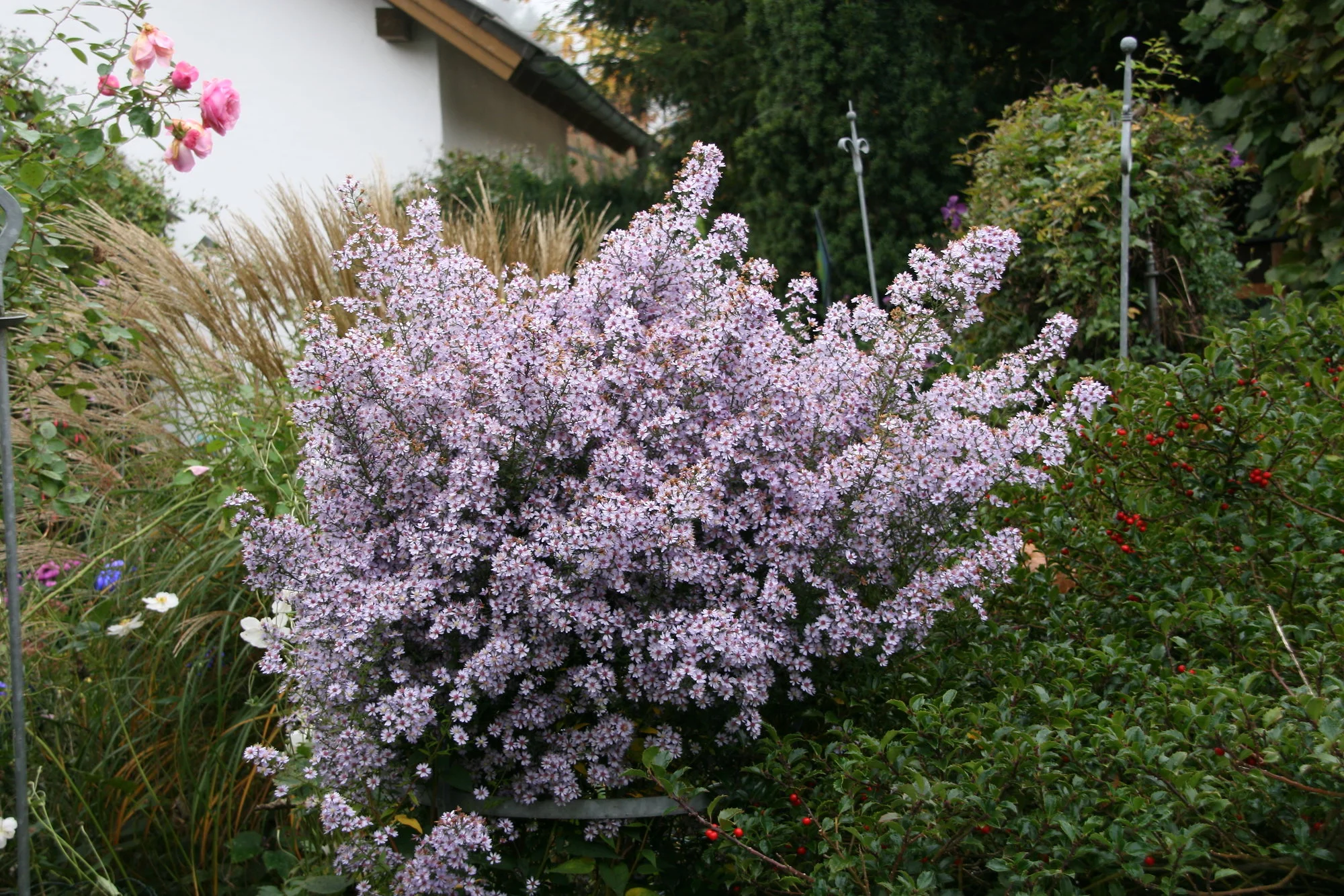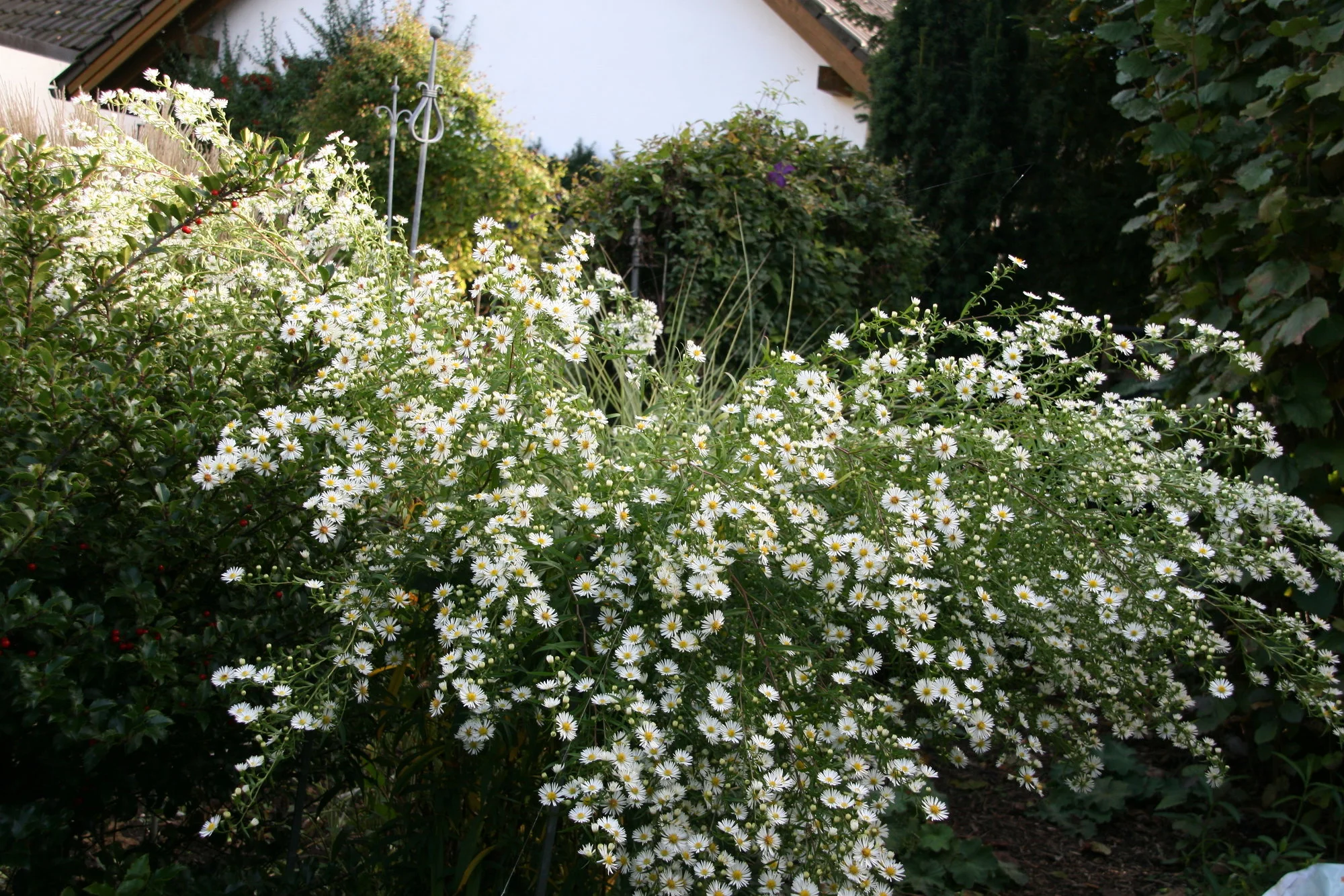 Das ärgert mich auch, wegen den Chrysanthemen, die angeblich winterhart sind und es dann doch nicht sind. Habe auch schon alles probiert. Das sind so richtige Wegwerfartikel geworden, die werden kurzgespritzt, das sie so kompakt sind wenn man sie kauft. Wenn man dann mal das Glück hat, das eine überwintert, dann wachsen die so gakelig und blühen nur sehr schlecht. Ich kaufe mir einfach keine solchen mehr. Mit den Astern aus den Baummärkten ist das genau so, die kauft man niedrig blühend, dann im nächsten Jahr werden die dann 1,50 m hoch, die sind auch kurzgespritzt. Kaufe nur noch mein Fachgärtnereien. Die weiße Herbstaster ist mindestens 2 m hoch, die habe ich in einem hohen Stützhilfe drinnen, habe jetzt noch Stöcke reingesteckt und angebunden. Da konnte ich nicht mehr dahinter durchgehen. Die ist aber so schön, aber wuchert. Da habe ich immer zu tun, die im Durchmesser so zu halten wie sie jetzt ist.