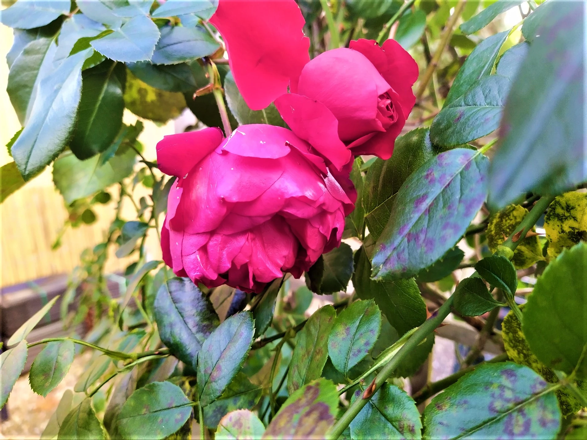 • Die Rose "Florentina zeigt noch schöne Blüten.