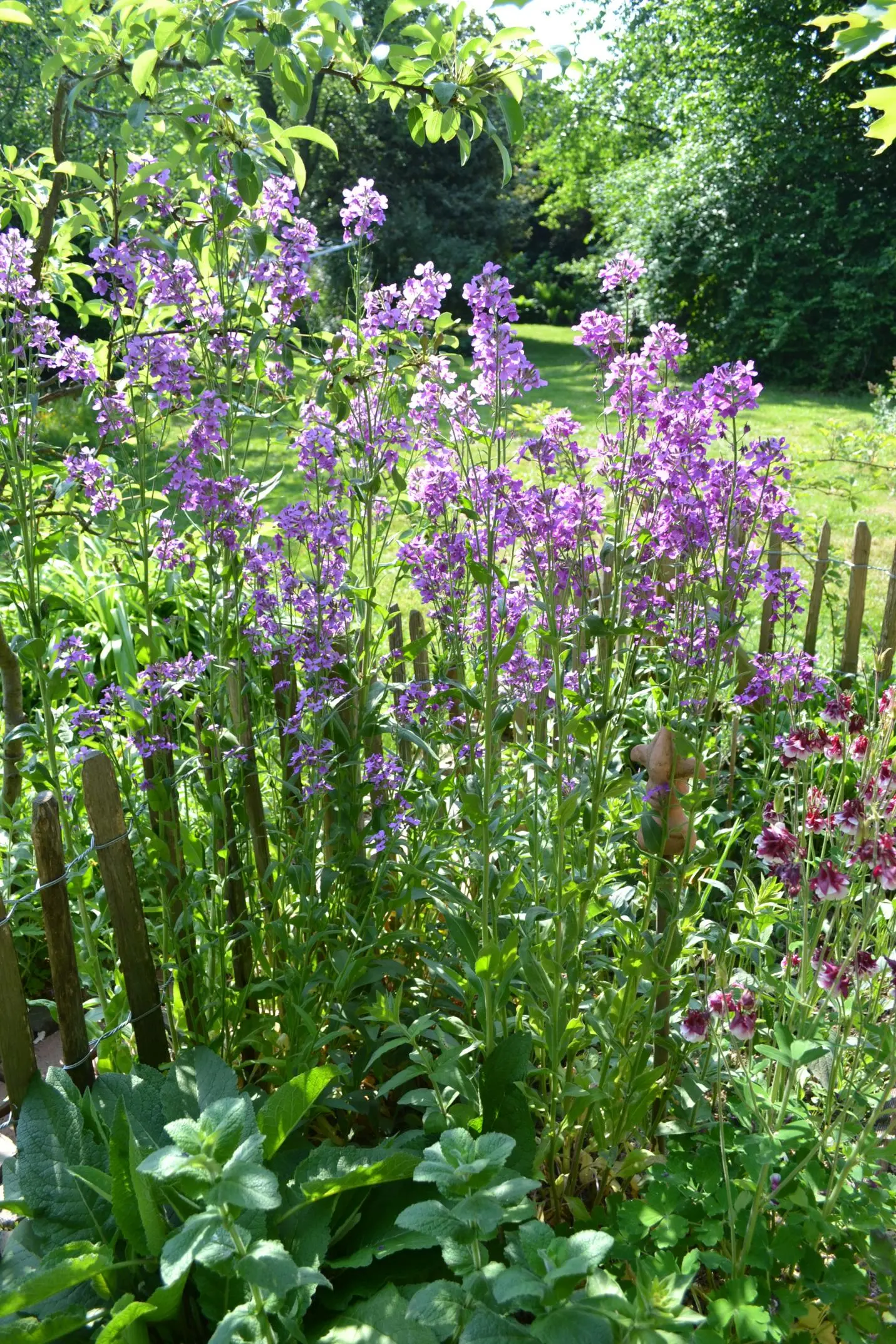 Lupinen, Ginster, Clematis, Schwertlilie, Orchideenprimel (die letztere gestern gekauft) sowie kreuz und quer mit Pfingstrose, Akelei und Flockenblumen: