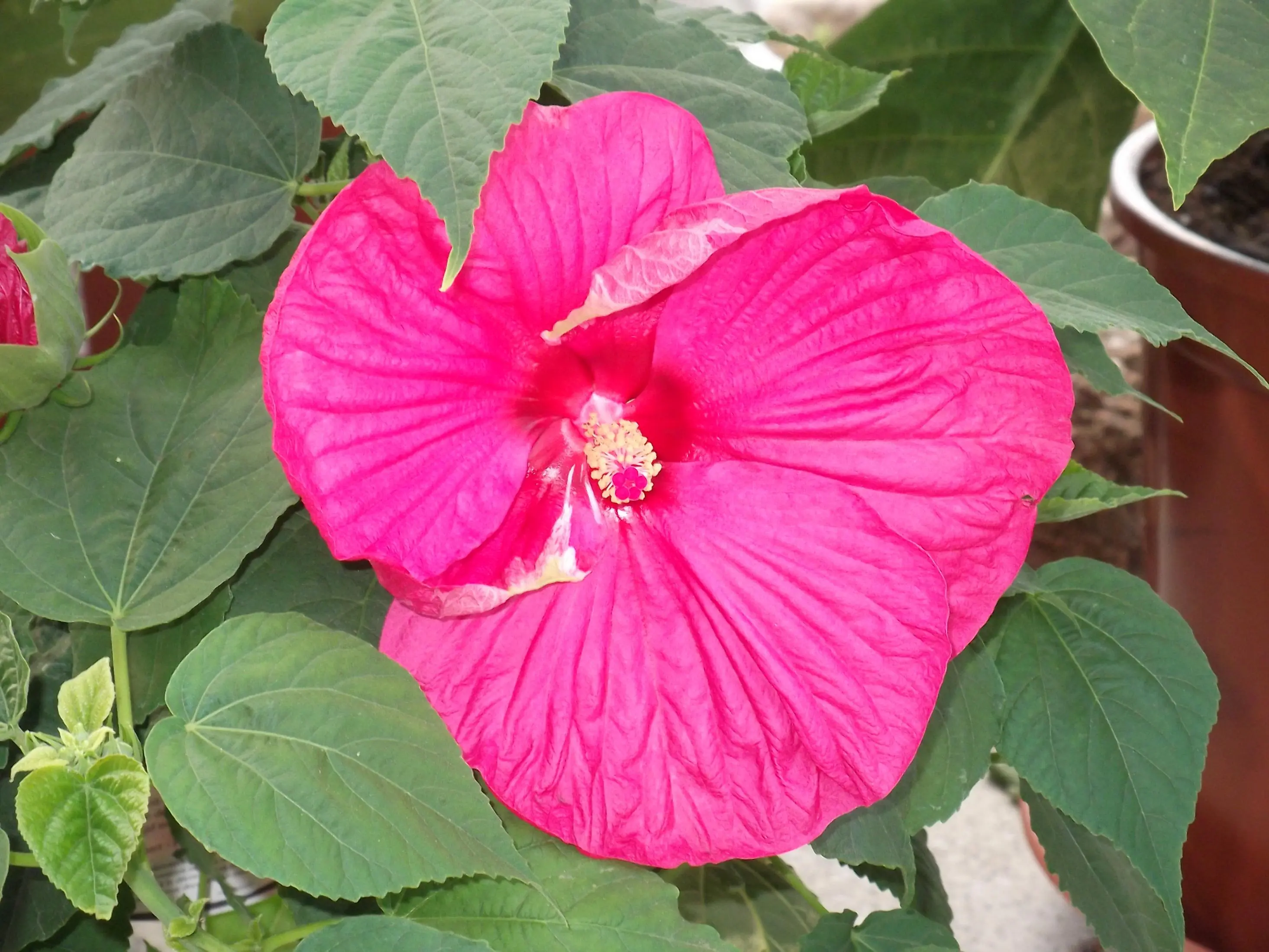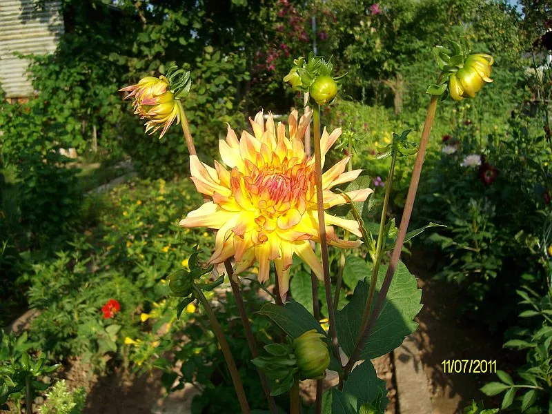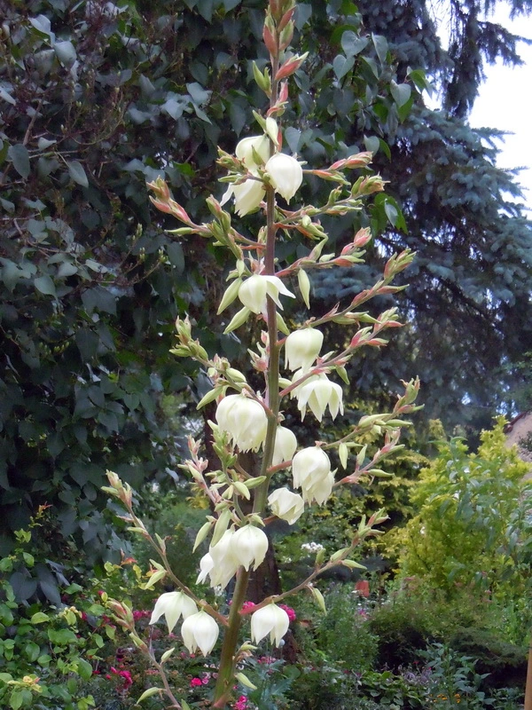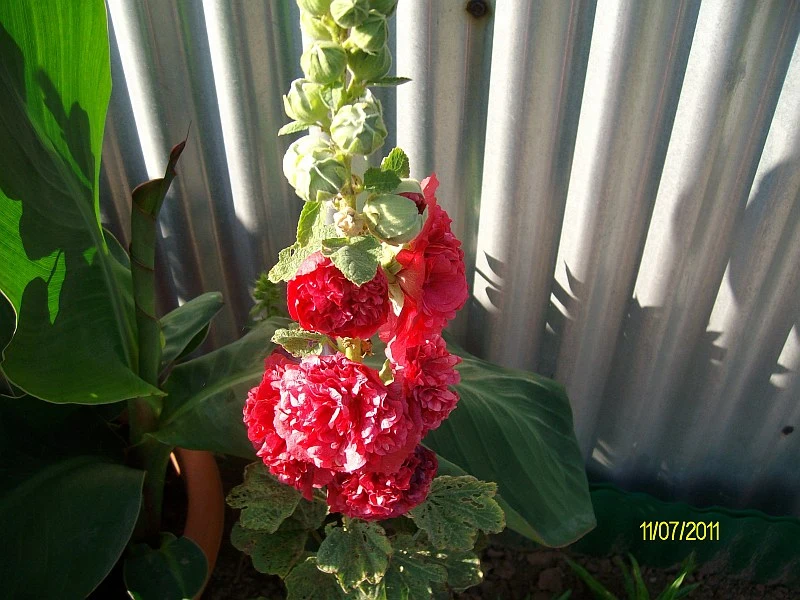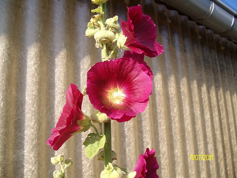 Stockrose, cremeweiß und hellgelb. Noch schnell aufs Foto bevor das Gewittter alles zerrupft.