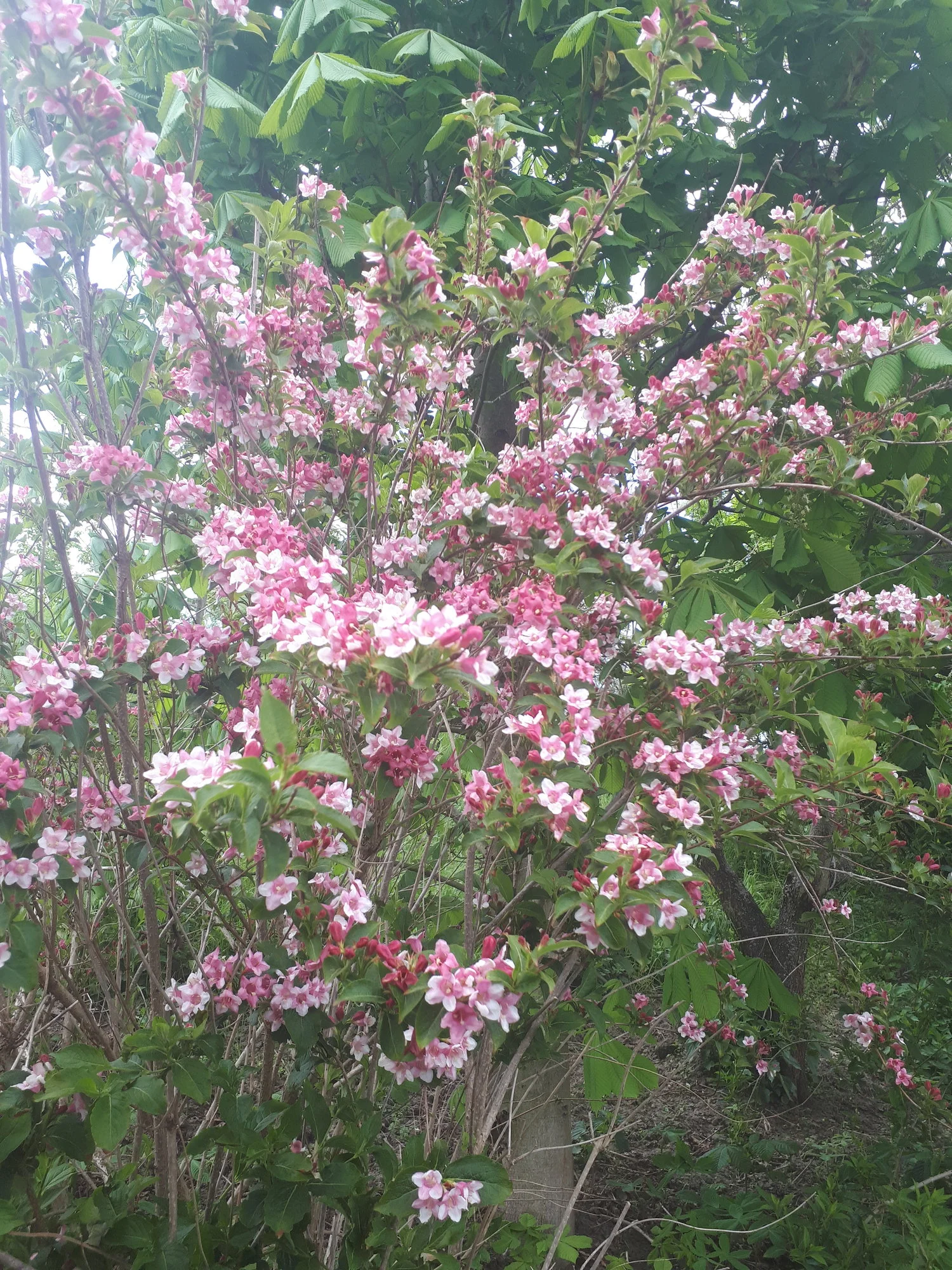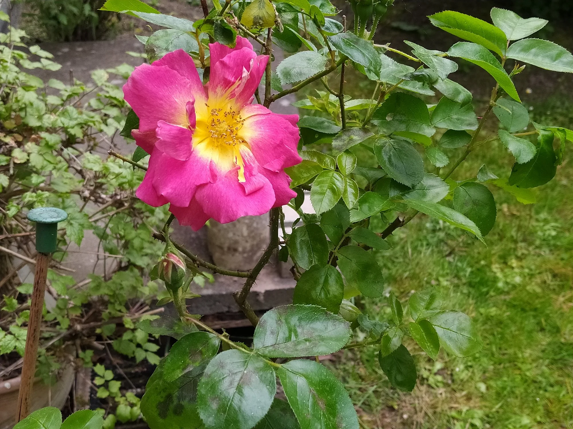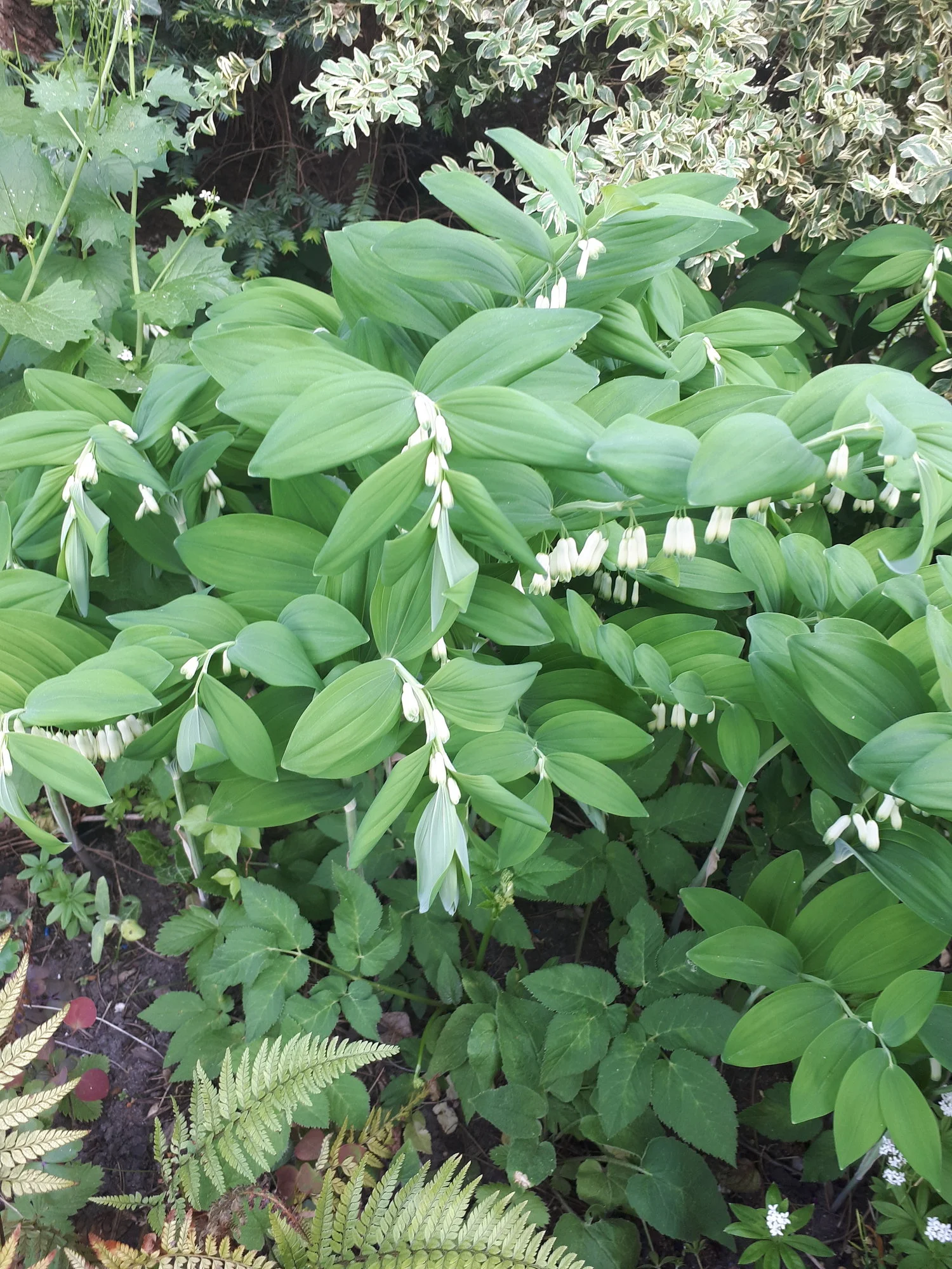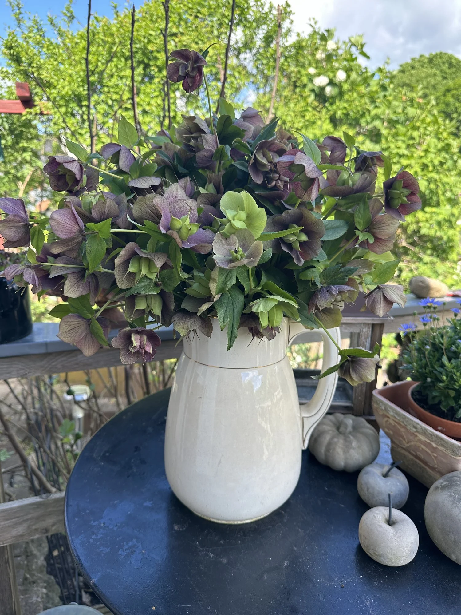 Heuer groß gewordene weiße Nachtviole Hesperis matronalis, ein überraschend im Rasen aufgetauchtes Hornveilchen und eine vom mehreren Blütenständen von Heuchera sanguinea 'Leuchtkäfer', die sich an einem schattigen Platz recht gut hält. Campanula portenschlagiana heute noch schön, morgen sicher vom Regen niedergedrückt. Geranium macrorrhizum 'Olympos', ein nur 20 cm hoch werdender Bodendecker