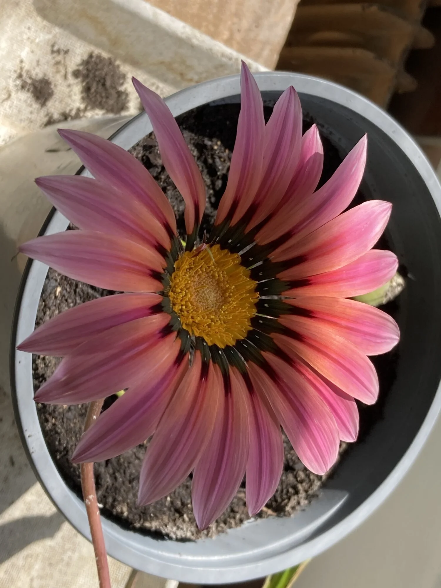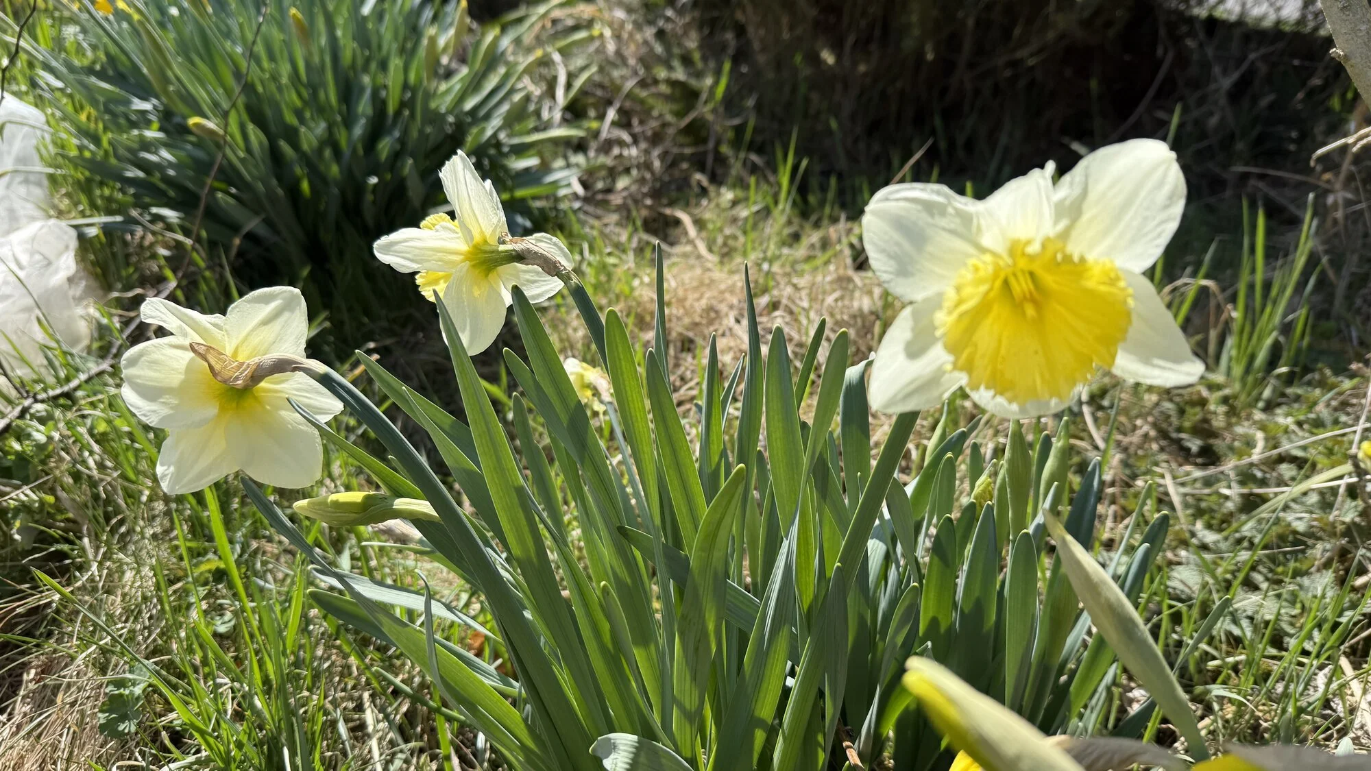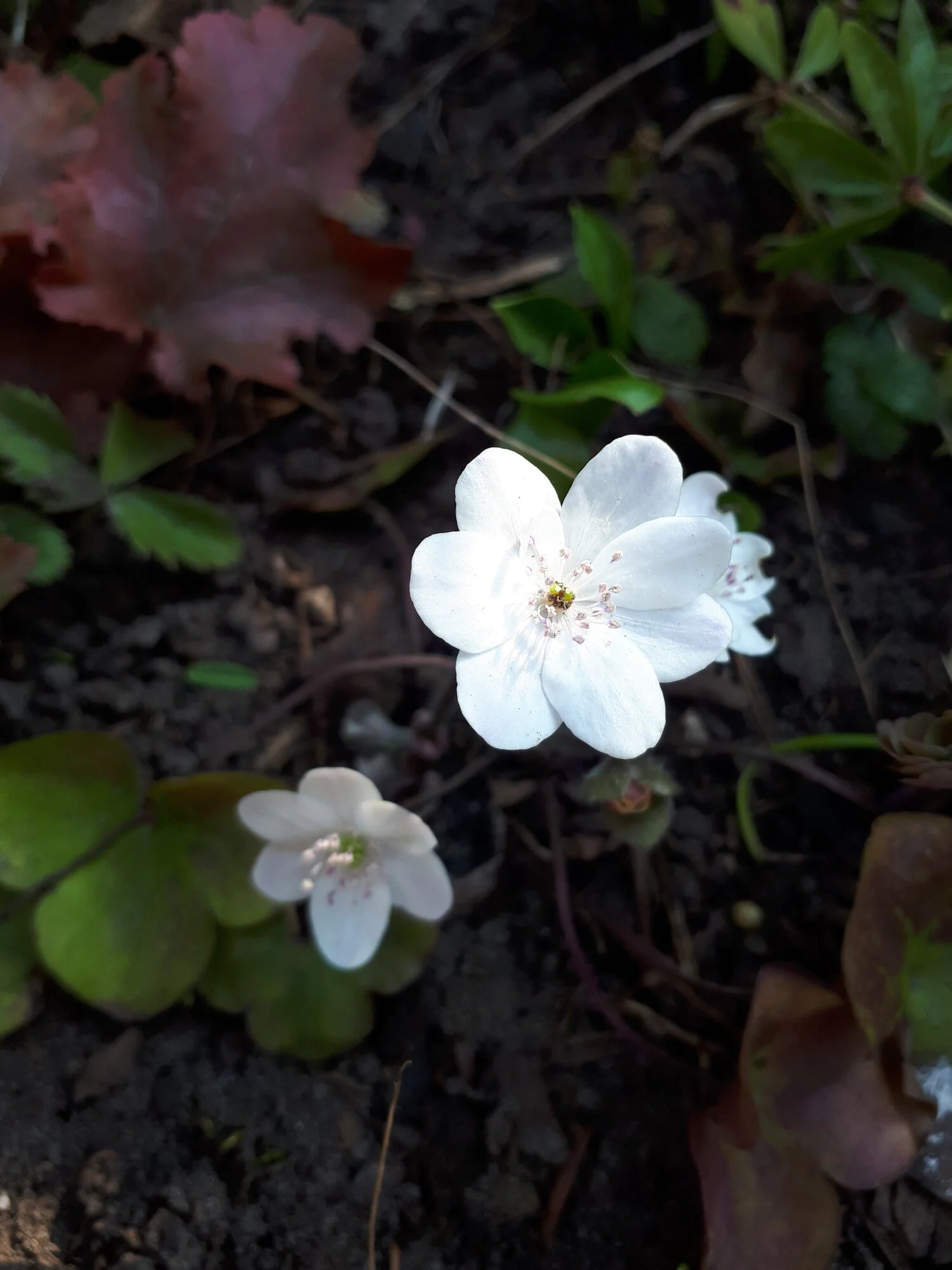 Sieht man nicht auf den ersten Blick, aber es ist eine Tulpe, die kleinste und zarteste Wildtulpe, die ich kenne. Blüht nur so kurz, dass ich im 1. Jahr die Blüte völlig übersehen habe. (Das grüne Blatt gehört nicht zu dem fragilen Geschöpf, sondern zu einer anderen Wildtulpenart, die leider seit Jahren gar nicht blüht, aber jede Menge Laub bildet.)