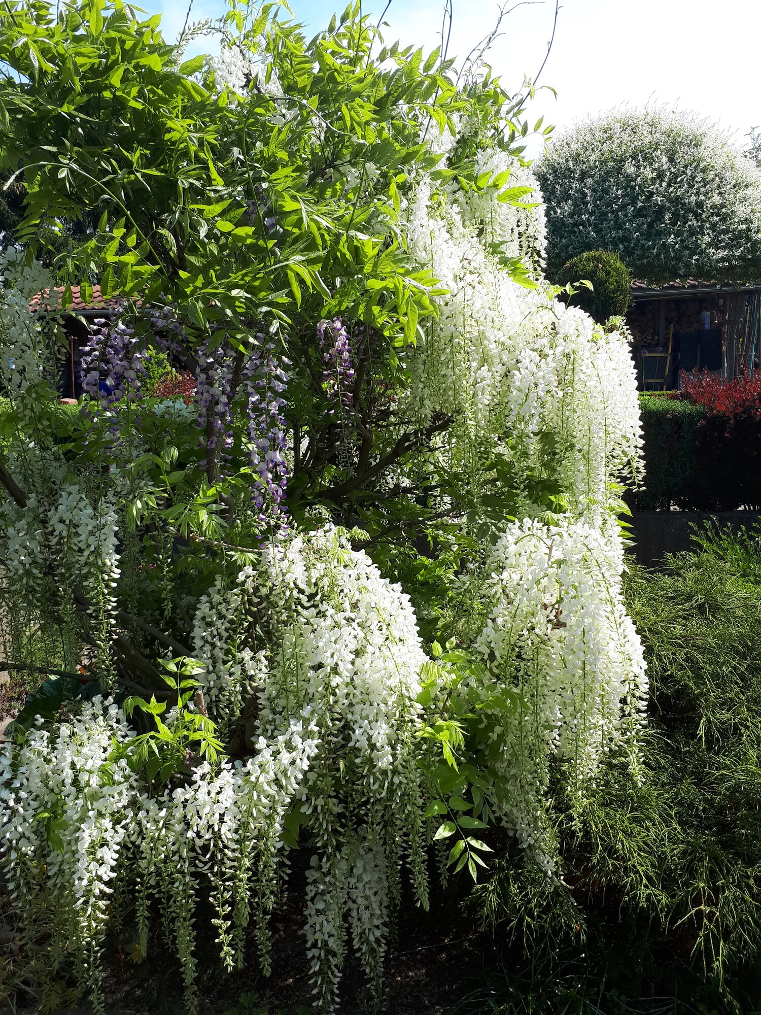 Daneben blüht viel. Die Akeleien fangen an, Günsel, Gundermann und Ehrenpreis, wilde Erdbeeren, Maiglöckchen, Waldmeister und Bärlauch, Flieder, die Mistel, alle Weißdorne, die Eberesche, unsere Hausazalee, die ersten Exemplare Waldscheinmohn...
