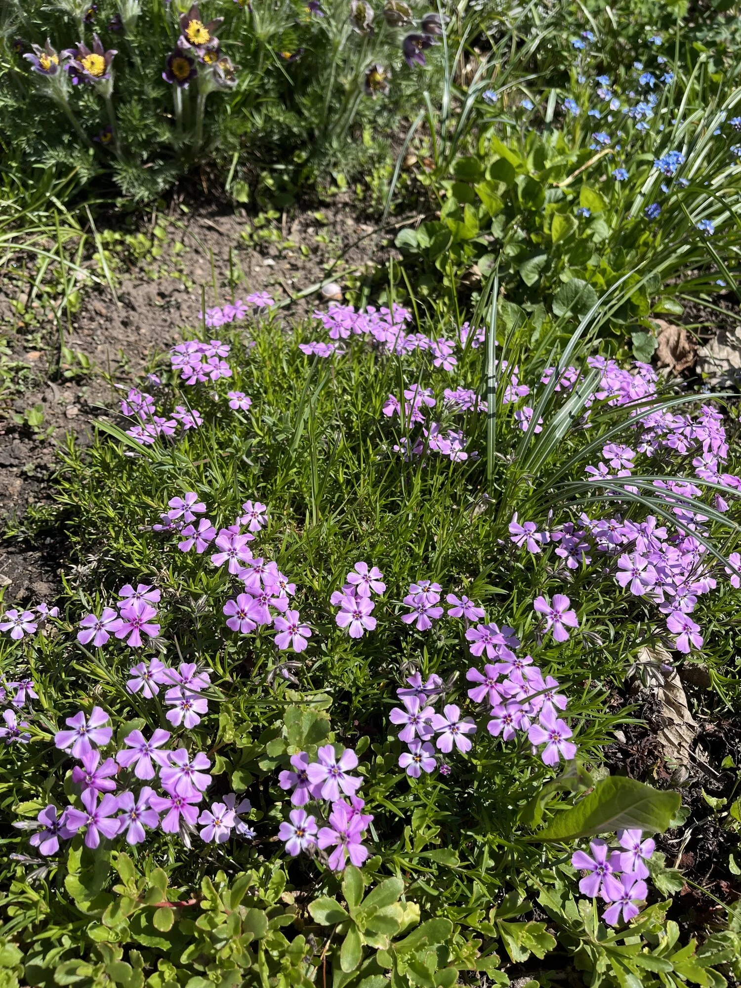 Sind da Küchenschellen im Hintergrund?Der Teppich Phlox hat sich auch mal wieder ne neue Stelle gesucht. Ist auch so ein Wandervogel.