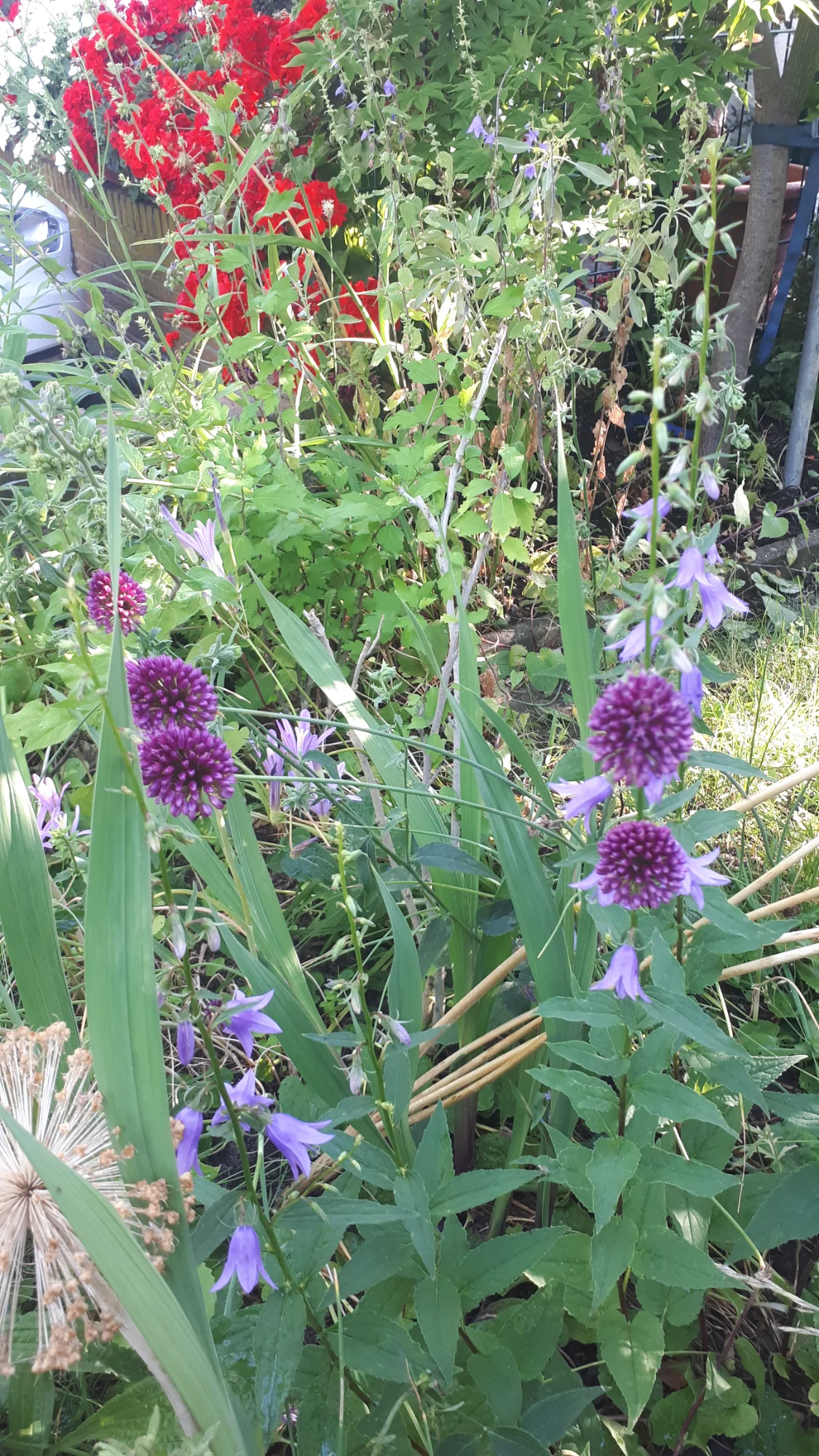 Ein Allium - aber ich habe keine Ahnung, welche Sorte. Hab davon an anderer Stelle noch mehr, hat sich im letzten Jahr gut vermehrt und ist ein Insektenmagnet. Da sieht man die Bälle fast gar nicht mehr, so voll besetzt sind sie. Auch Unmengen an Dolchwespen sind drauf!