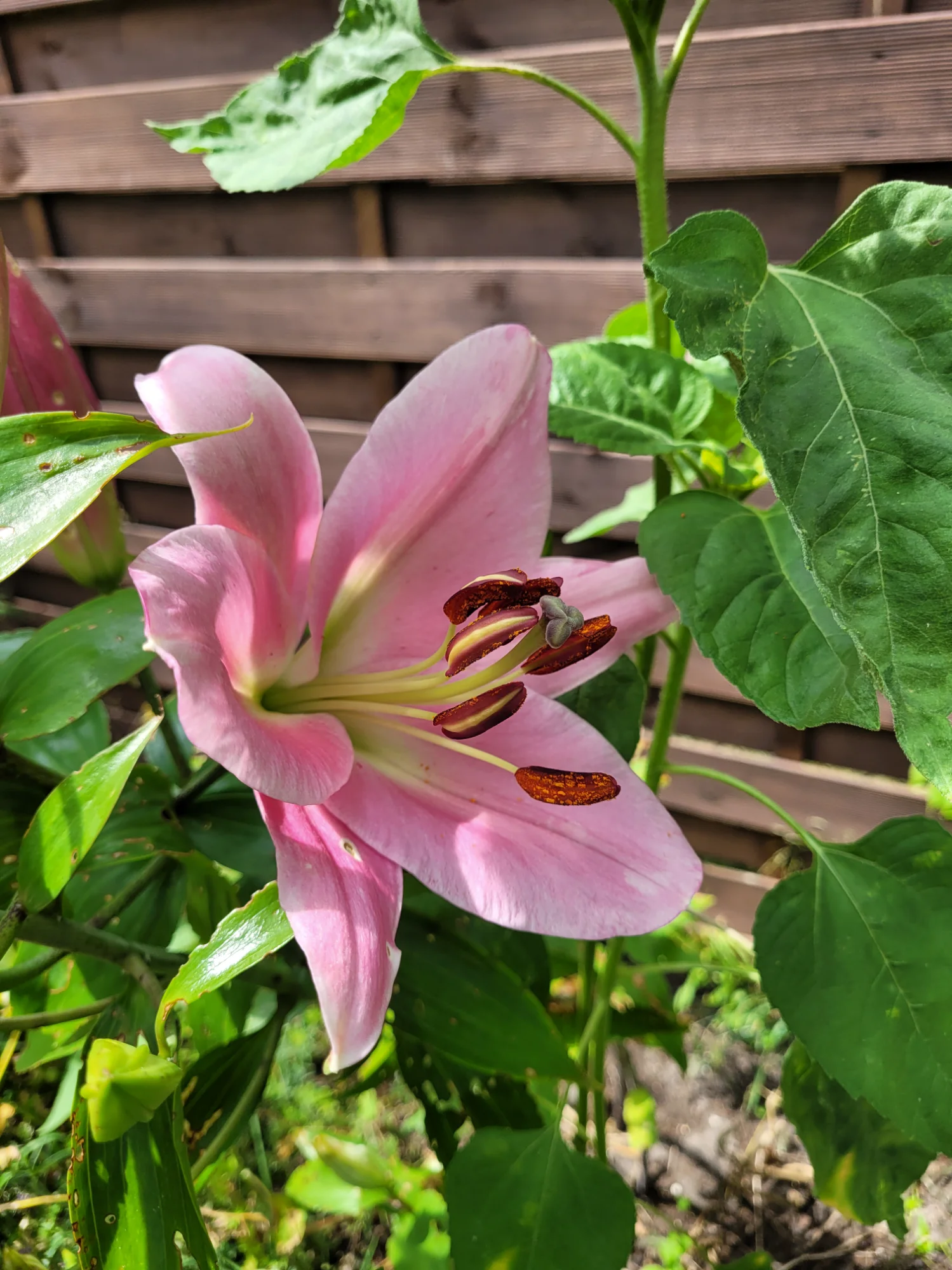 Der duftende Ziertabak hat sich ausgerechnet im Lichtschacht angesiedelt und ist meiner Pflanzung aus dem Vorjahr entsprungen.