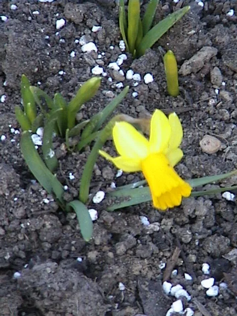 Tulpen, Perl- und Hyazinthen sind bei uns noch weit entfernt von einer Blüte. Grad sind die ersten kleinen Narzissen erblüht.