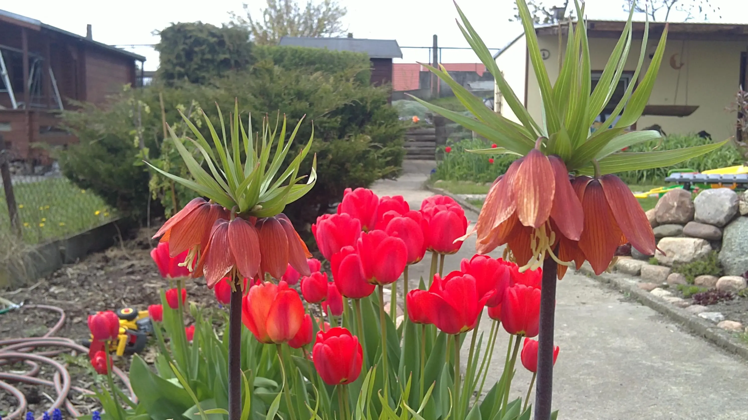 Hier bei uns kann ich bisher nur Akeleiknospen sehen. Da wir heute wirklich Aprilwetter haben bin ich in den kurzen Sonnenscheinabschnitten mal im Garten bzw. Vorgarten gewesen.