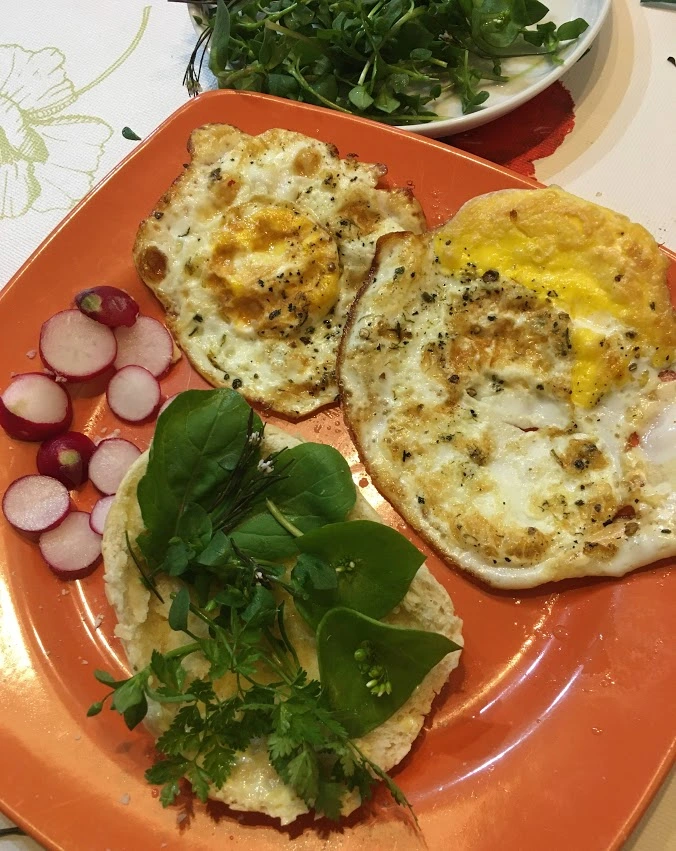 dazu habe ich etwas frischen Girsch und Rucola aus dem Garten geholt