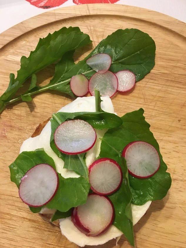 Radies und Rucola aus dem Garten über den Mozzarella