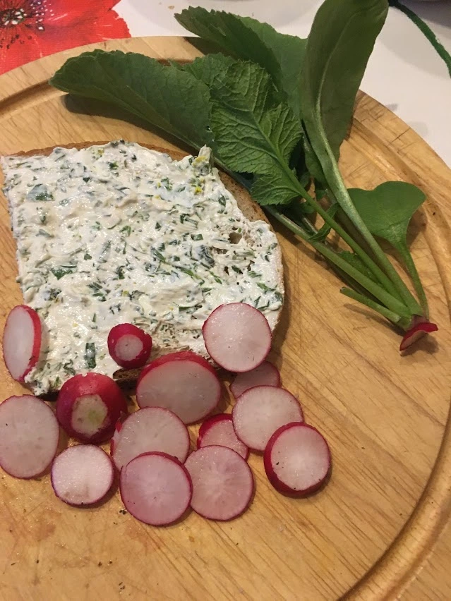 und einen Wildkräuter Frischkäase dazu.Echt lecker und es macht glücklich