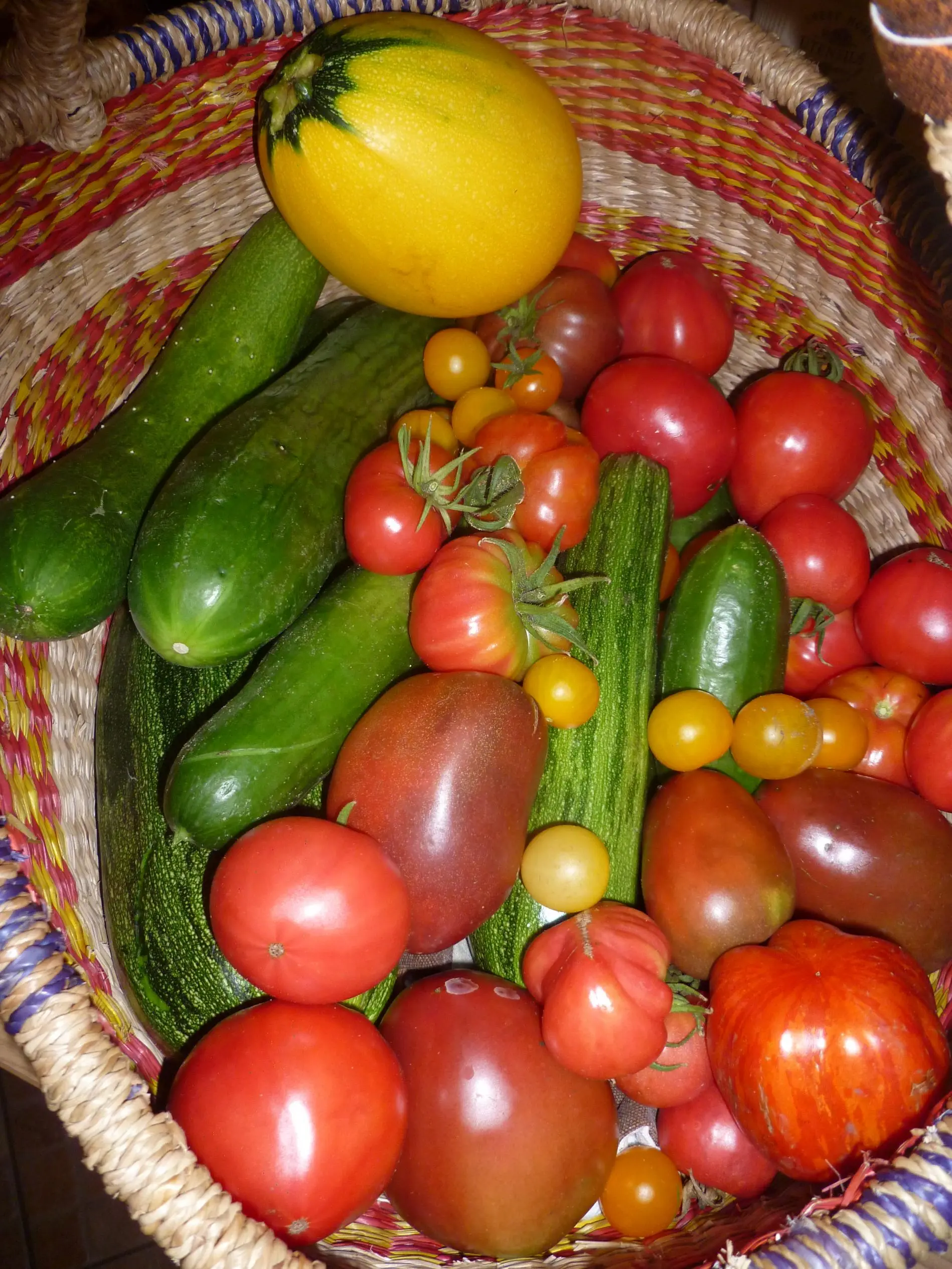 wir ernten quer aus beiden gärten denn bei jedem ist etwas anderes im überschuss reif und somit ganz praktisch.