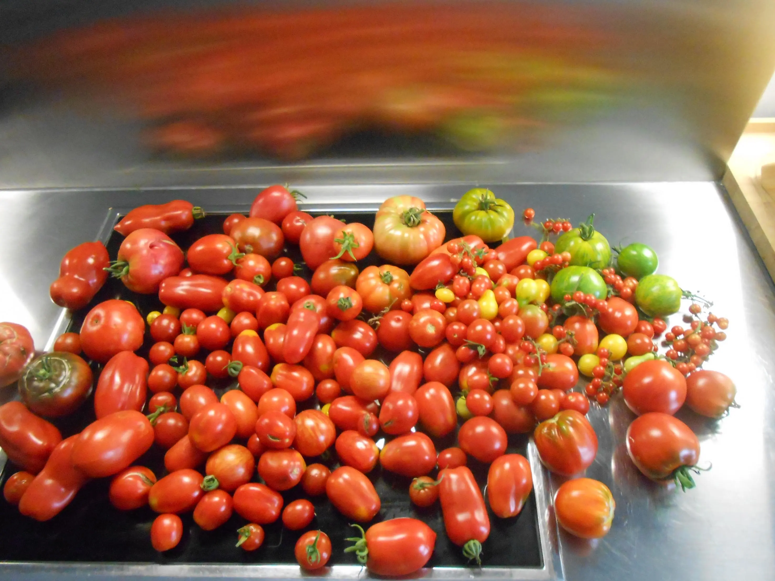 Aus dem Garten jedoch einen kleinen Eimer Tomaten und ein paar Äpfel. die meisten fallen runter, weil sie wurmstichig sind.