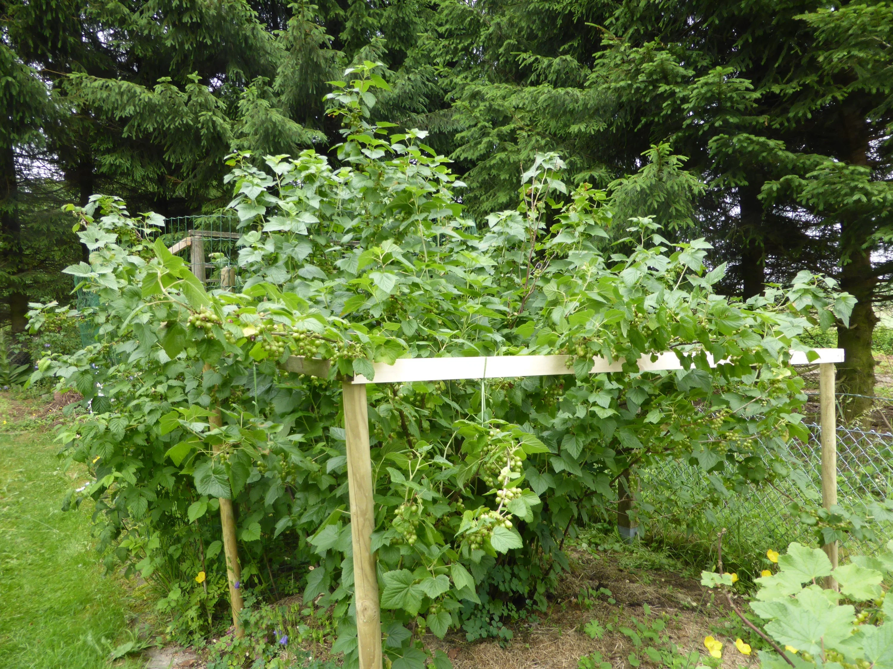 Ja, die Sträucher sind groß und haben die Gestelle drum, damit man die Zweige hochbinden kann, damit sie nicht unter der Last ihrer Beeren bis auf den Boden hängen und brechen.