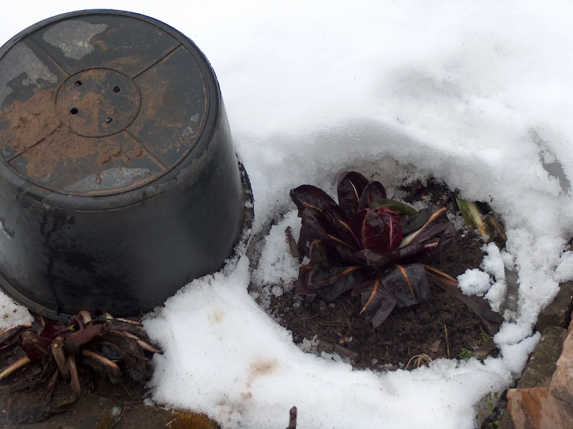 • Treibsalat "Larissa" aus dem Gewächshaus, hält sich bei den Temperaturen erstaunlich gut.