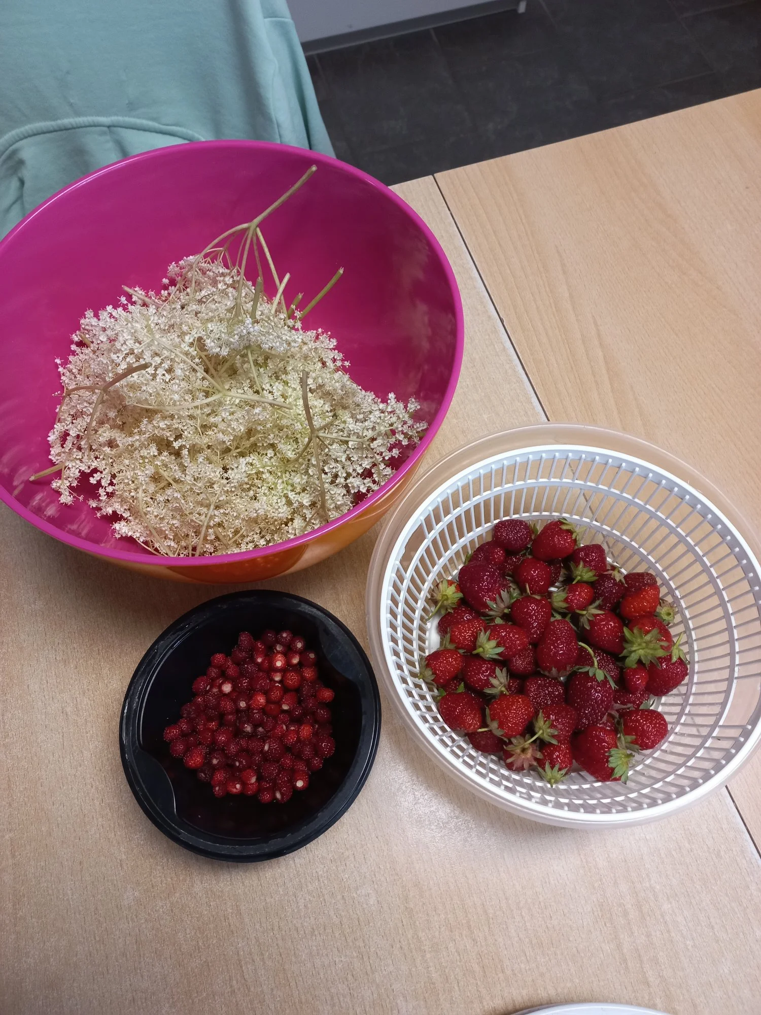 Erdbeeren wurden mit Crepes zum Abendessen verputzt und der Holunder steht mit Wasser, Zucker und Zitronensäure in der Warteschleife für die nächsten 4 Flaschen Sirup.🤤