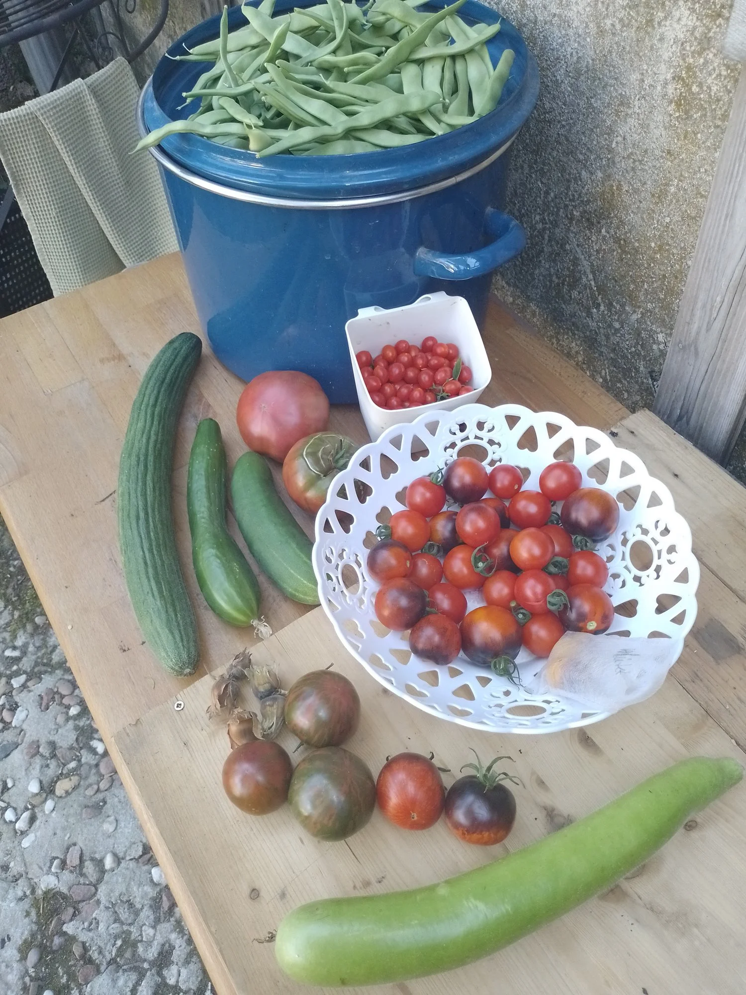 Wow, sogar Birnen.Heutige Ernte aus dem Kleingarten.
