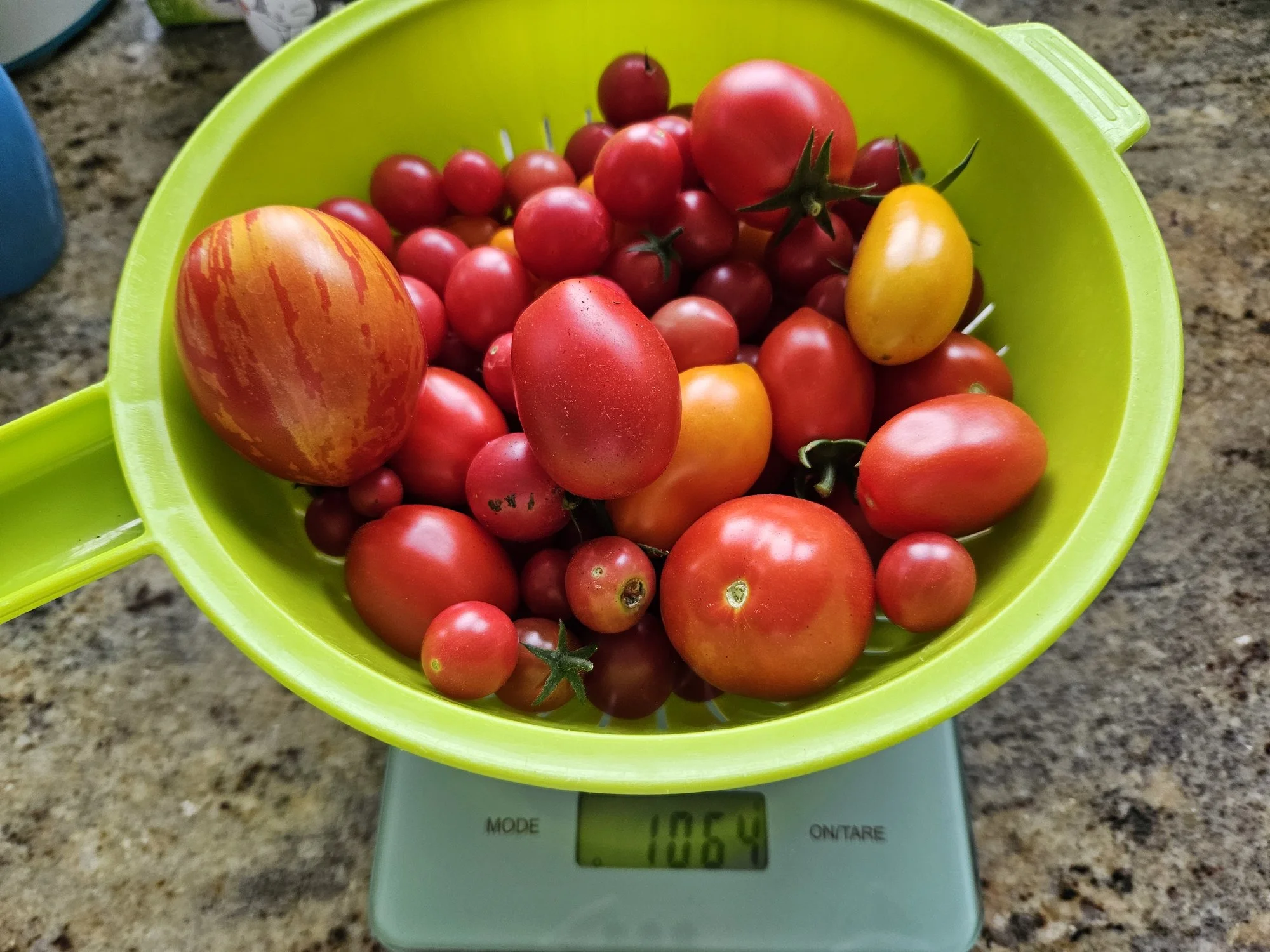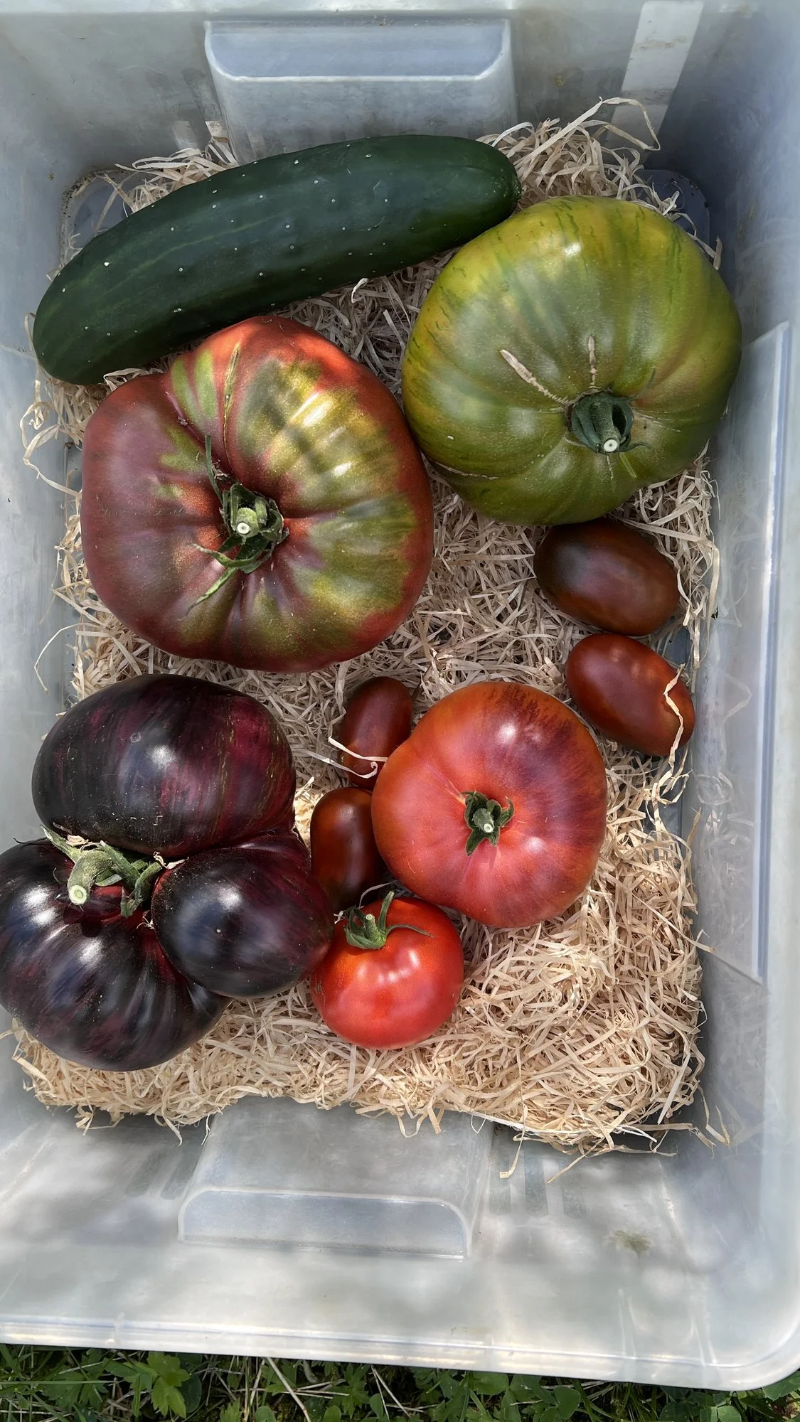 Wie schmecken Dir diese Tomaten?Buschbohnen und black strawberry tomaten.