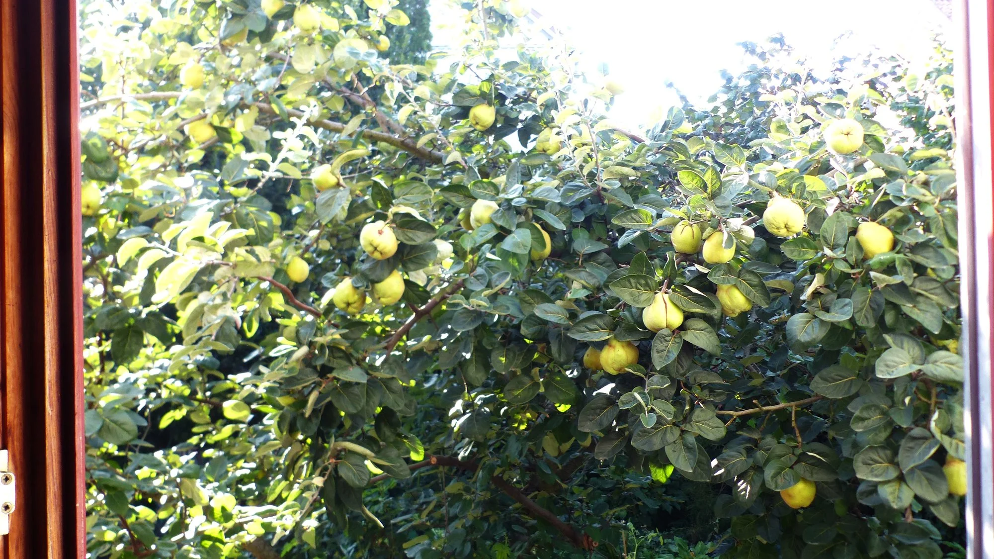 Brombeeren und die ersten - ins Gelblich gehende Quitten fallen vom Baum.