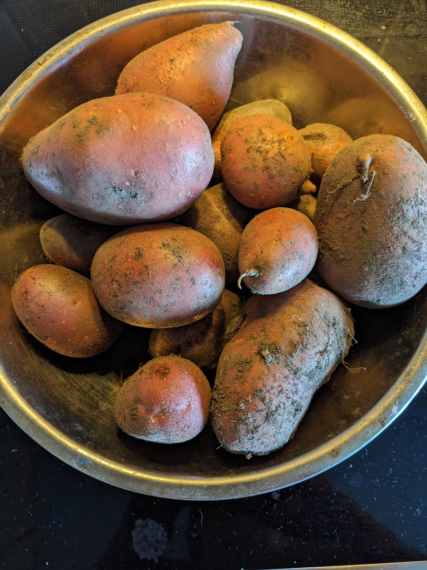 Kartoffeln, überraschend wenig. Hatte das Beet extra gepimpt, die Schnecken abgesammelt und genug Regen gab es dieses Jahr auch….
