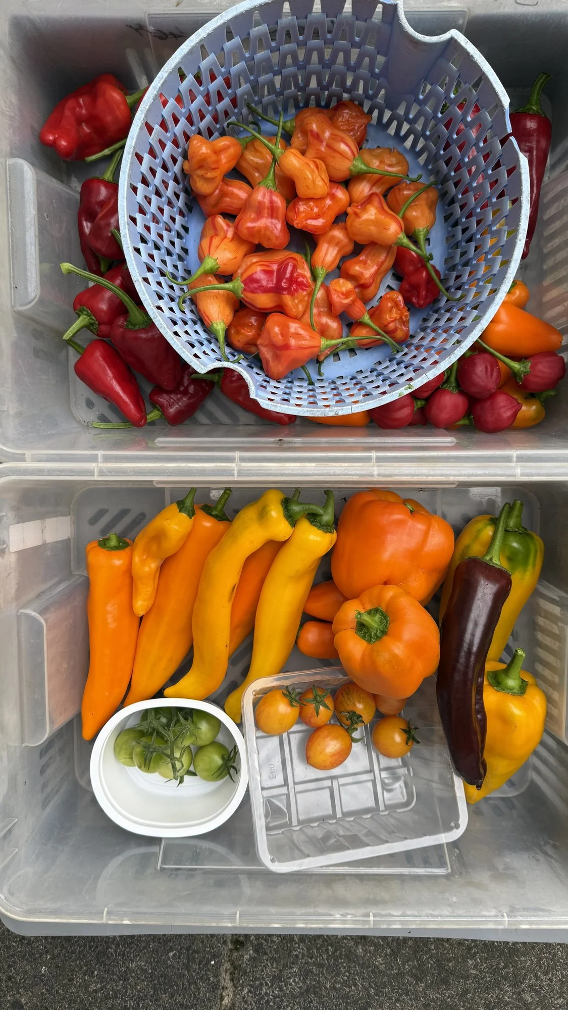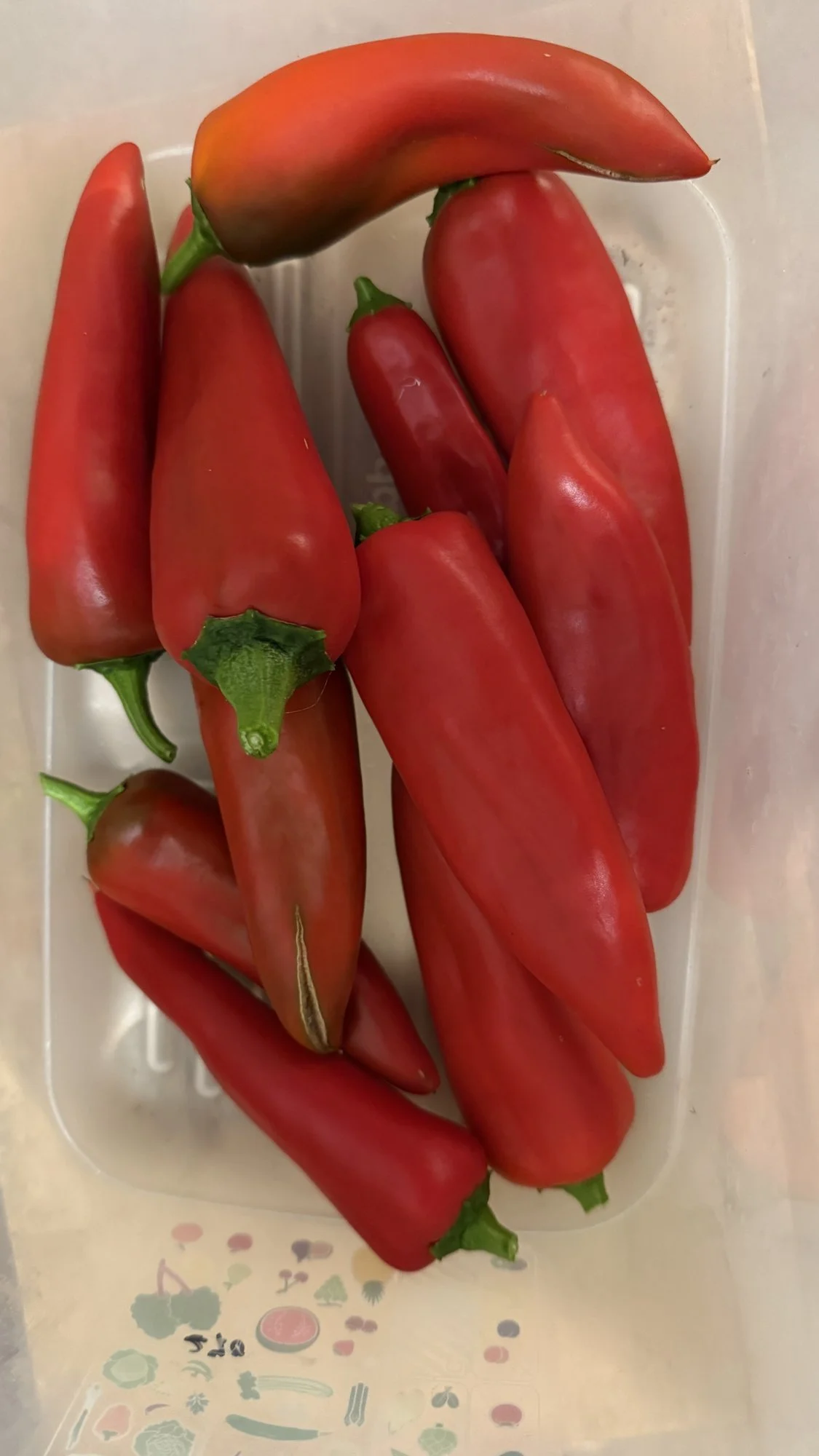 Spitzpaprika für scharfe sauce waren reif und im vorbeigehen noch himbeere genascht.