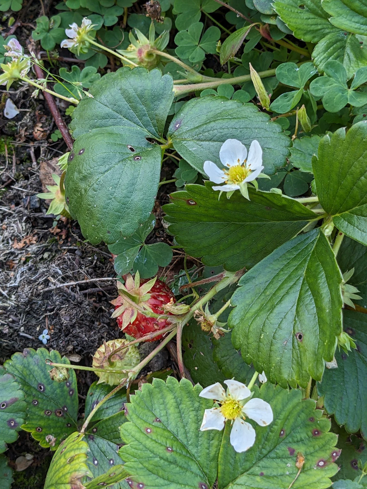 • Bin unlängst am Erdbeerfeld unseres Bauern vorbei gegangen, da blühten auch die Erdbeeren und rote Beeren waren auch dran...