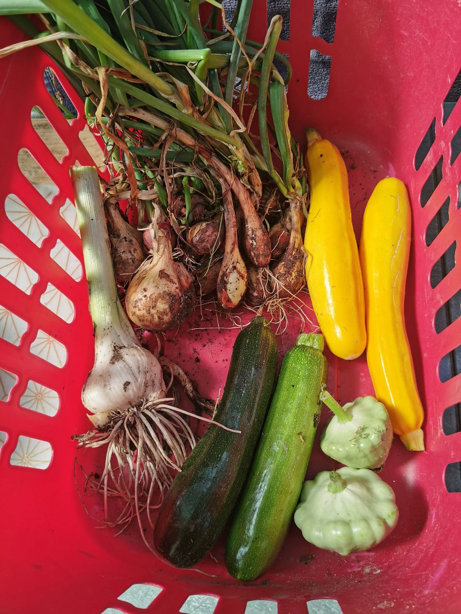 ein paar Zwiebeln und Chalotten und einen Elefanten Knoblauch