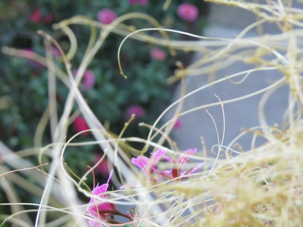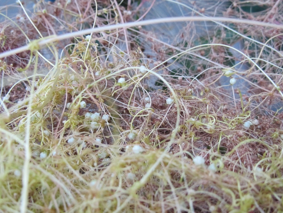 mein balkonkisterl wird bevölkert von dieser pflanze. sie überwuchert meine geranien. ich hab keine wurzeln, die in die in die erde reichen entdeckt. ich hab sie schon mal entfernt, aber sie wächst ordentlich nach. die kleinen kugerln beinhalten nehm ich an samen. was könnt das sein???
