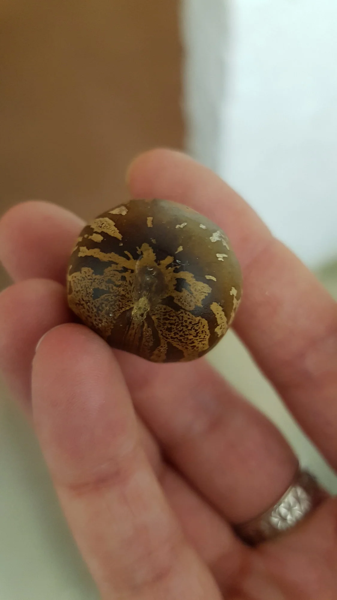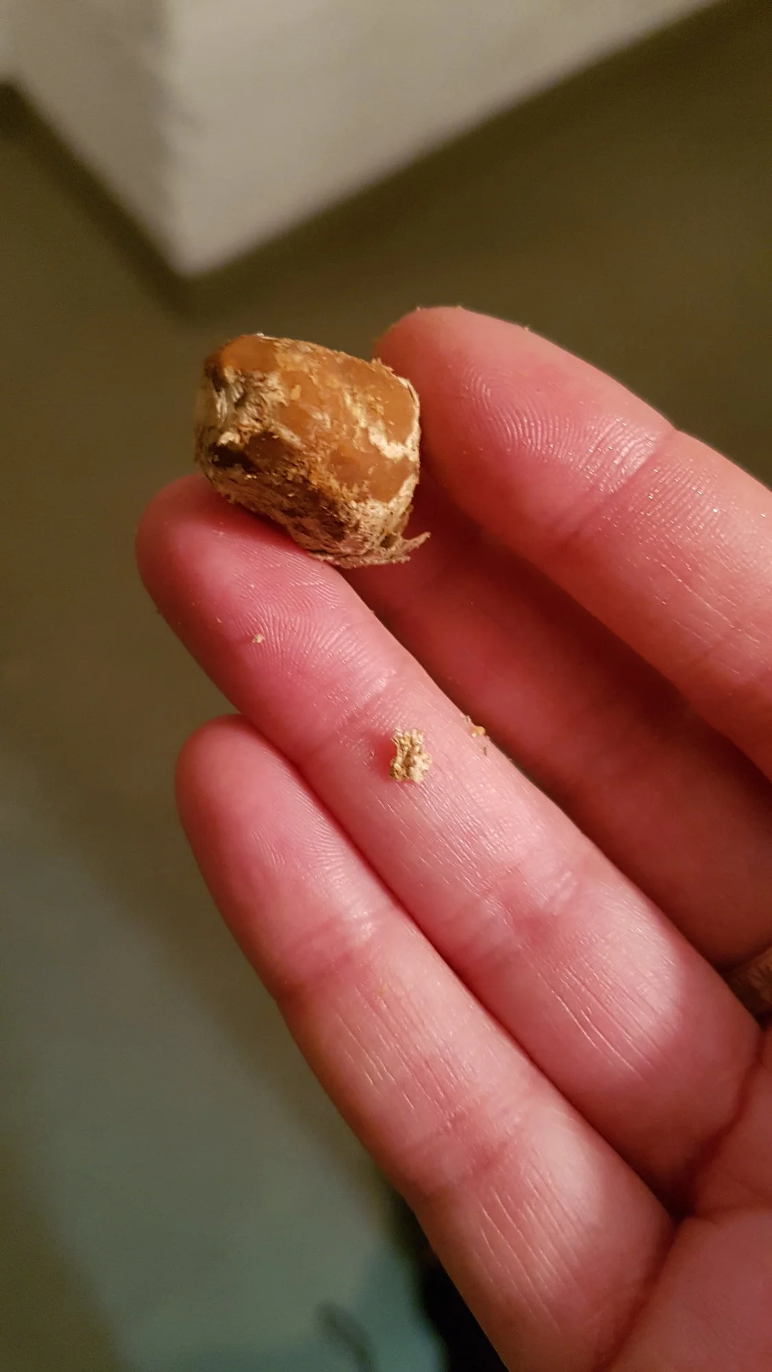 Ich hab es jetzt mal aufgehackt und paar Bilder gemacht... für eine Macadamia-Nuss gefällt mir das Muster nicht..