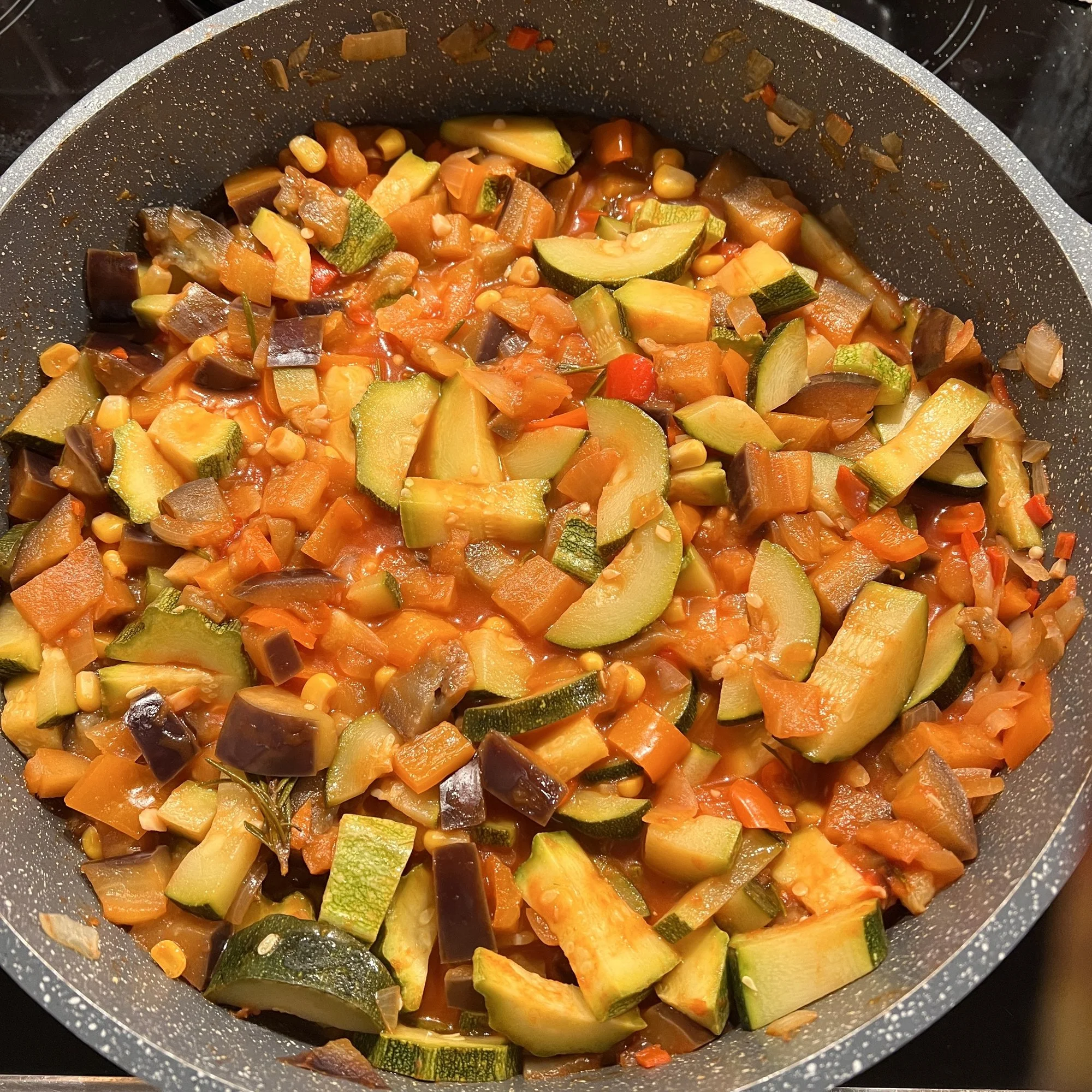 Ich habe mit dem Inhalt der Gemüsepfanne noch genug. Werde mir dazu noch paar Kartoffeln dampfgaren.