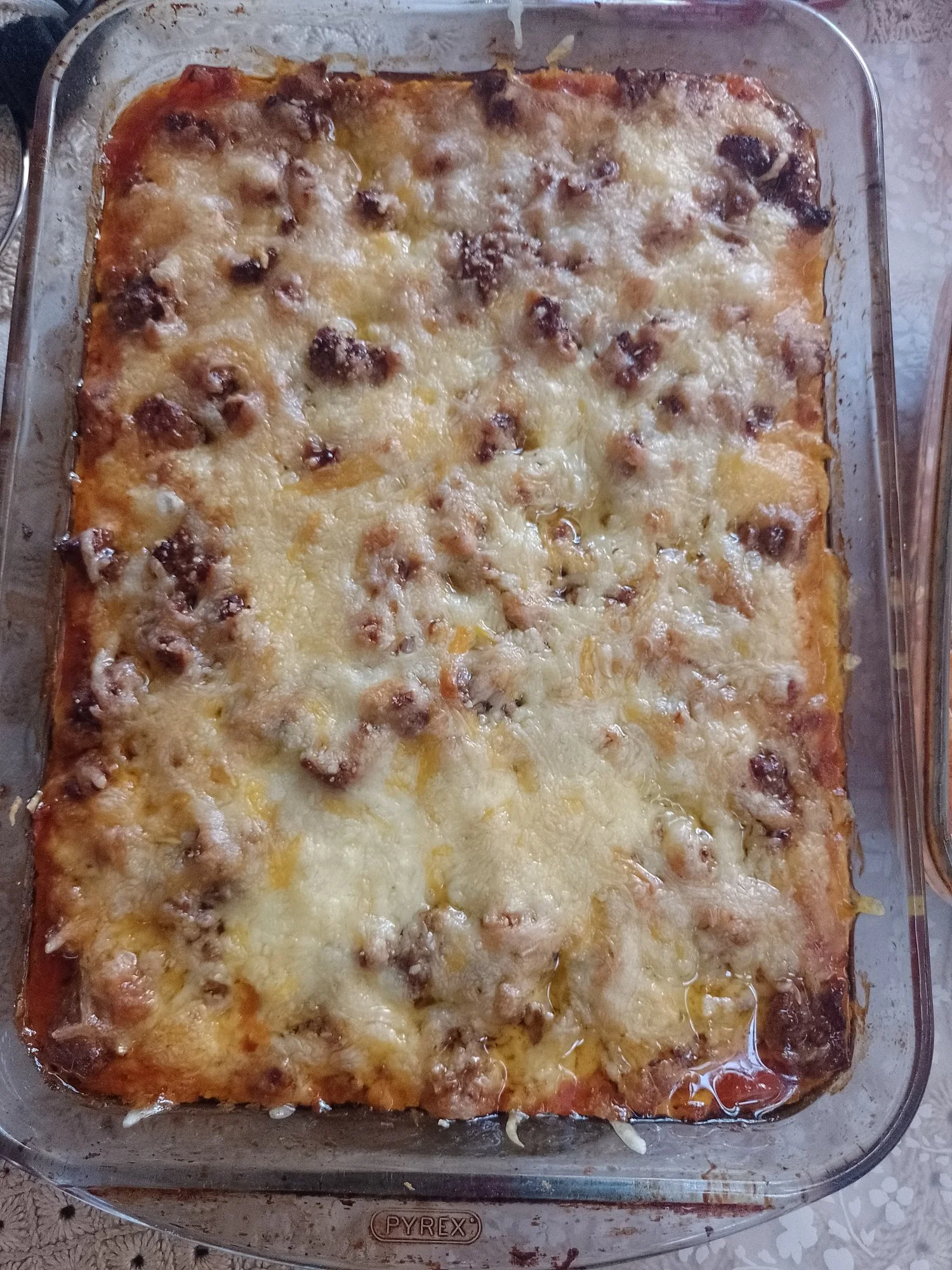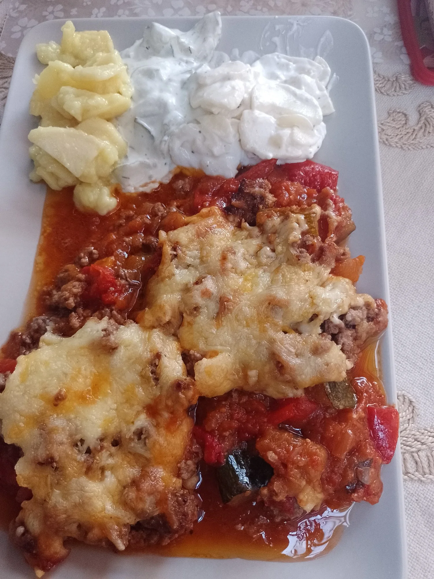 Gestern habe ich von dem übriggebliebenen Letscho einen Letscho Hackfleisch Auflauf mit Käse überbacken gemacht.